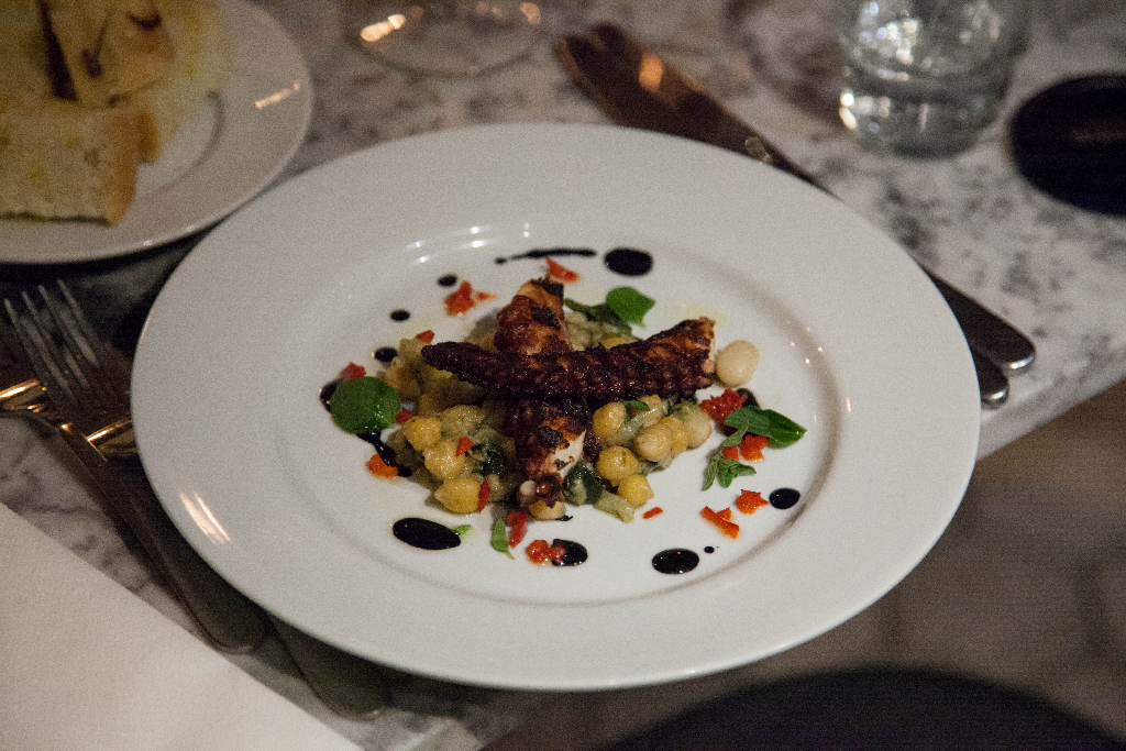 Before that, we tuck into a plate of Frito Misto, vegetables and seafood coated in a light tempura. It’s again a very simple dish, but one that lets the ingredients speak for themselves without needing to over-complicate things, except with a splash of lemon. Octopus is much the same, seared with fire and smoke on the grill then paired with beautifully creamy chickpeas.