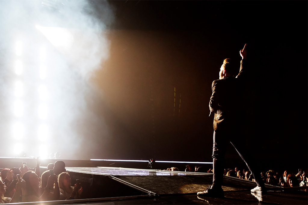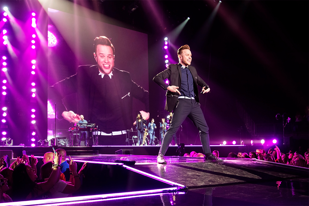 Celebrating the release of his fifth studio album 24hrs, Olly Murs screams into the microphone, “I’m back, London!” Cue a giant roar from the audience. They’re pretty amped up for a Thursday night, and as soon as Murs starts singing You Don’t Know Love, he implores them to forget that it’s a weekday – which is easy to do when concentrating on the artist’s showmanship, the stage design and the live band alone.