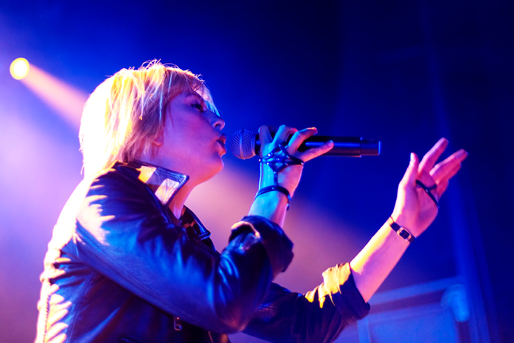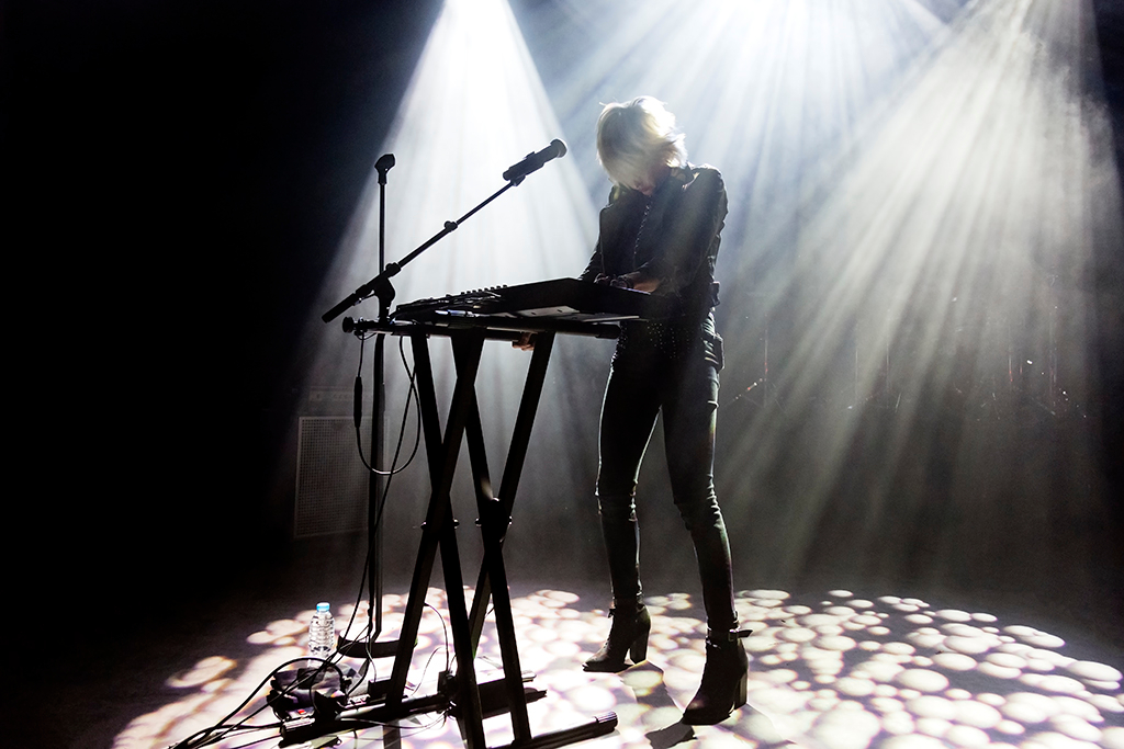 While the songs are eclectic, the atmosphere is a little mixed, as if the crowd aren’t sure whether to dance or sing, or just watch. The hesitation is eliminated as the band progress through their set, and especially when Josh Carter mounts a keypad to play Don’t Move. The audience cheer as soon as the intro tracks sound and Barthel slinks around the stage. She has a subdued stage presence that grows as the gig continues, but this is a good sacrifice; she needs to pay a lot of attention to the complexities of her vocals, and they benefit from this. Her voice is incredible, and it’s clear that, as well as the production, this is central to the pair’s music. Often the songs are characterised by the singer’s mixture of delicate falsetto, huge notes, trip hop patois, and shouts and growls.