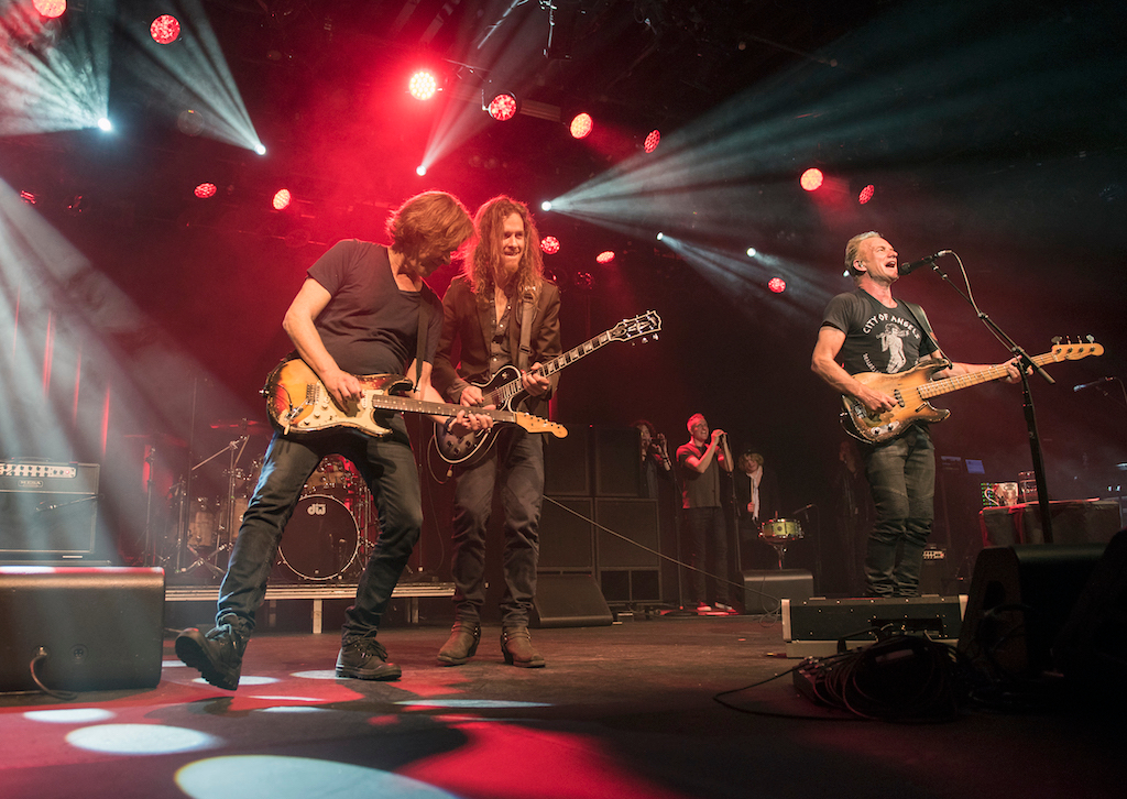 In top form, Sting was phenomenal last night at the Hammersmith Apollo, the 38th performance on his 57th and 9th world tour, highlighting his first true rock album in 13 years. Accompanied by a three-piece band, included were guitarists Dominic Miller and son Rufus, drummer Josh Freese, and Sting’s son, Joe Summer. Theatrically inspired lighting and clear, impeccable sound accented a vibrant, vivacious, top-notch show.
