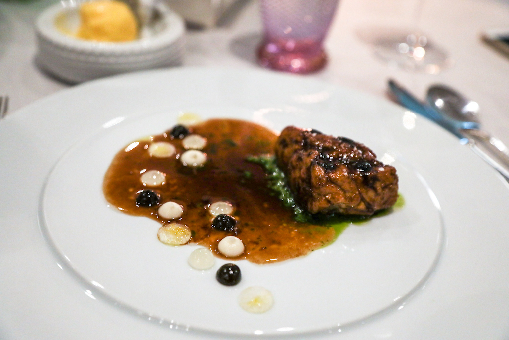 My initial disappointent for the dumplings vanished as I tasted what was probably the best prawn broth I’ve ever had. The dumplings and pieces of raw prawn were delicious but the highlight was what they were immersed in; sipping the broth was like sipping the essence of the little ten-legged crustacean. On the other plate, the sweetbreads were fantastic, tender and tasty, with an intense cooking jus (although lying on a too-garlicky gremolata).