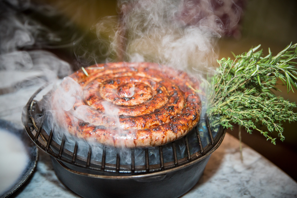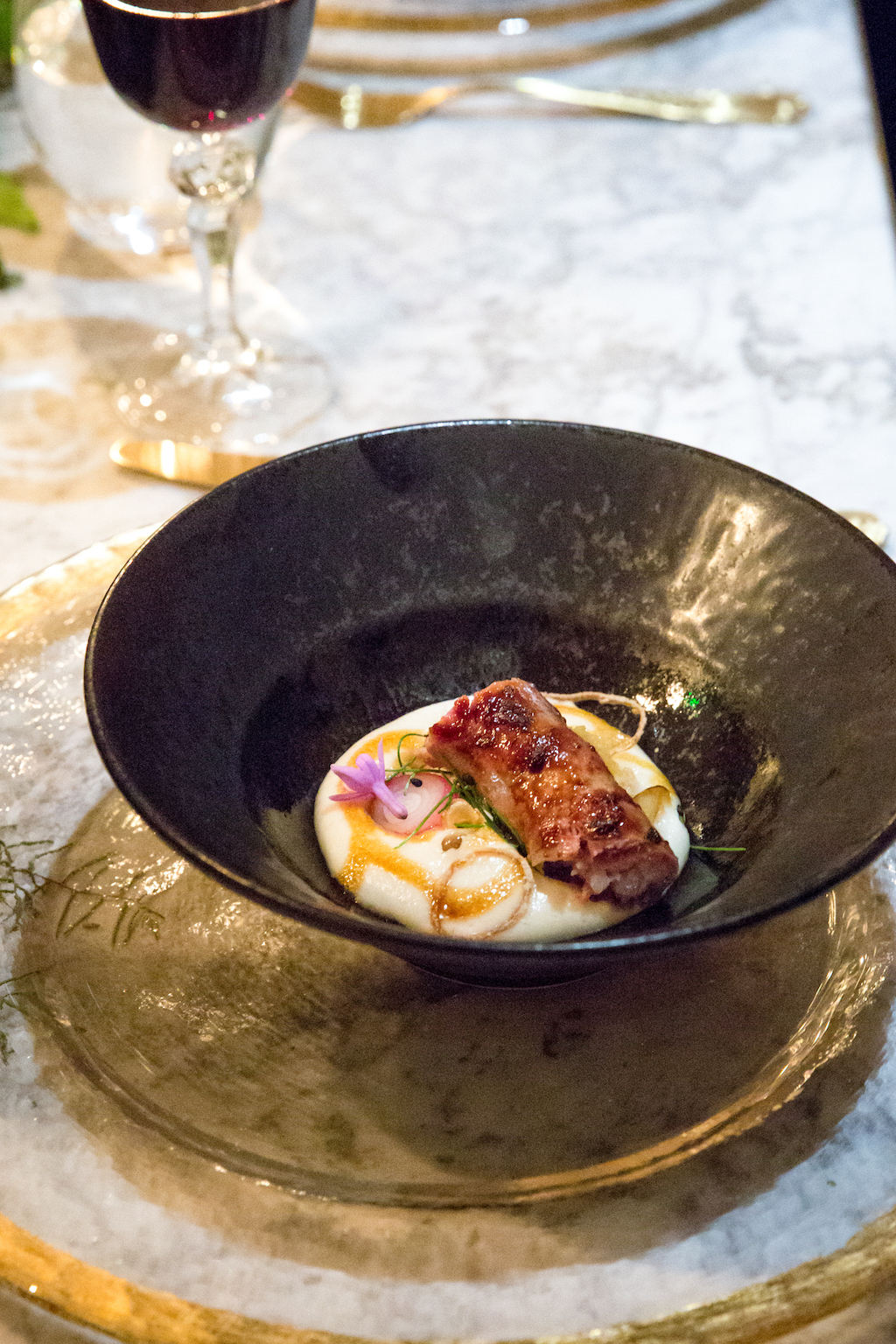 A cheeky, kitsch dessert of malted mini milks finishes us off, and is a refreshing end. It’s endearingly naff, probably because it’s also delicious. Its maltiness offsets a syrupy sweet Chateau Delmond Sauternes nicely, and the wine choices throughout the evening work well, even if they’re very safe. The only one that really takes our interest is a peppery Chilean 2015 Carmenere from Vina Chocalan whose beautiful cherry chutney notes work perfectly with the smoky sausage.
