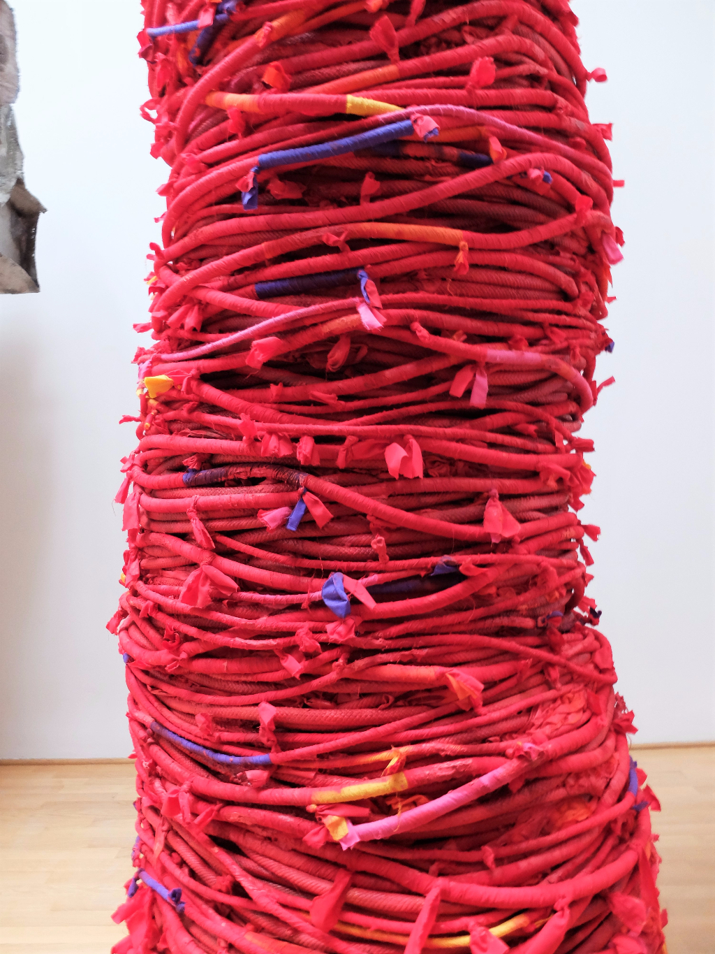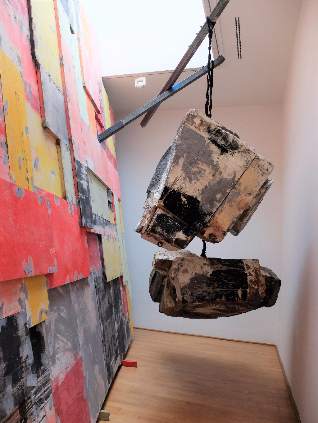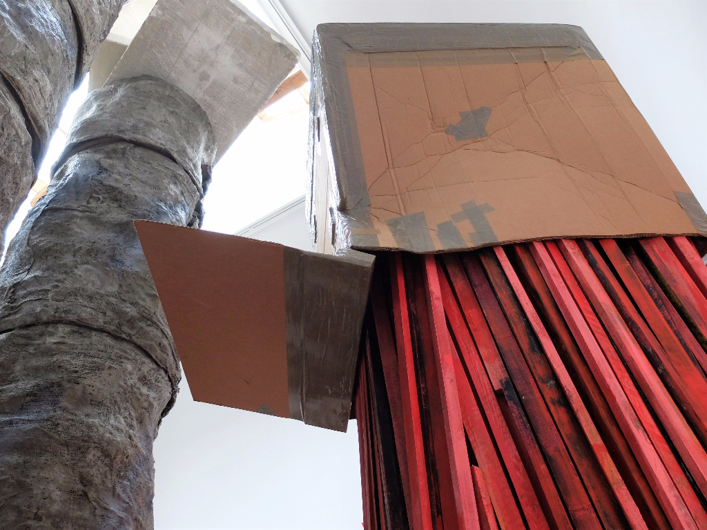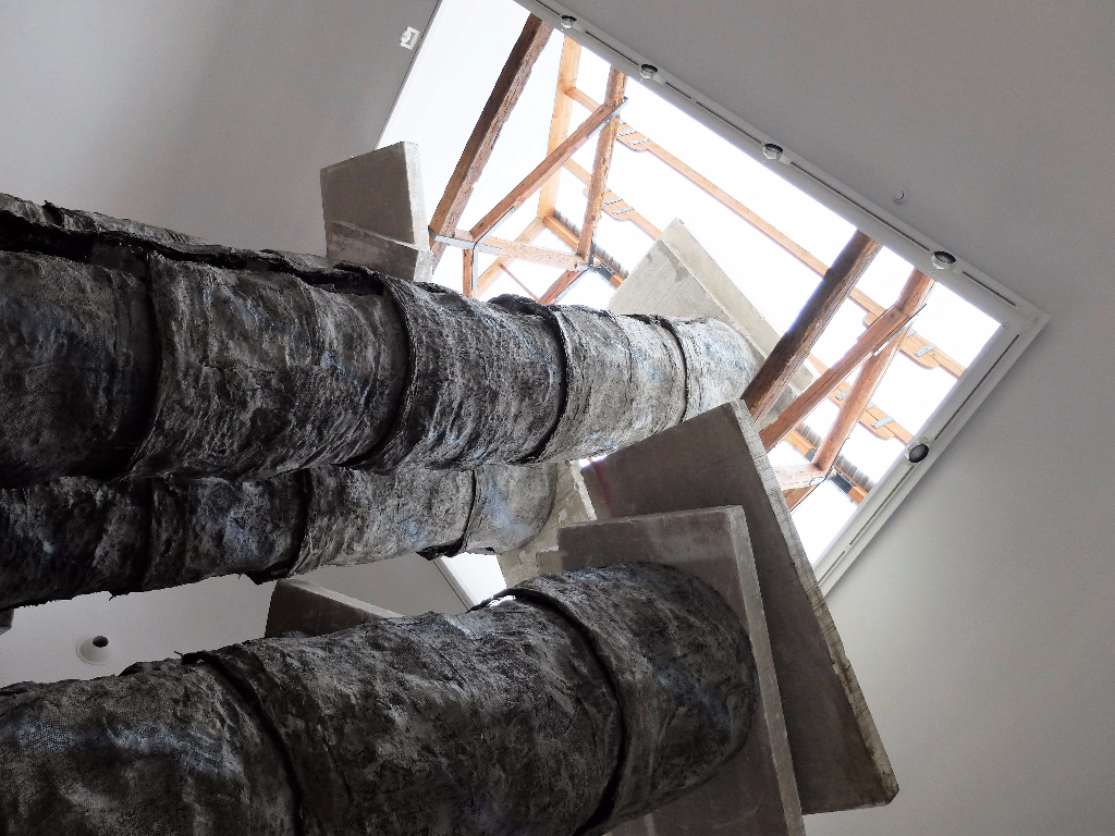 Phyllida Barlow’s installation for the British Pavilion is intended to explore every facet of the historic architectural space. It starts outside the building and makes its way inside, sometimes dissecting rooms or crossing spatial boundaries. The title – Folly – refers both to the purely decorative buildings that were a key part of Romantic English landscape design and to the state of foolishness that the word implies. Barlow’s installation is fun, with its bright colours and lollipop-like structures, but it also feels somehow sinister: these foreboding details can be found in a huge crushed cardboard tube and in the towering pieces that look far too flimsy for their height. These strange recycled creations invite the viewer to consider the concept of sculpture and to form their own unique response to objecthood.