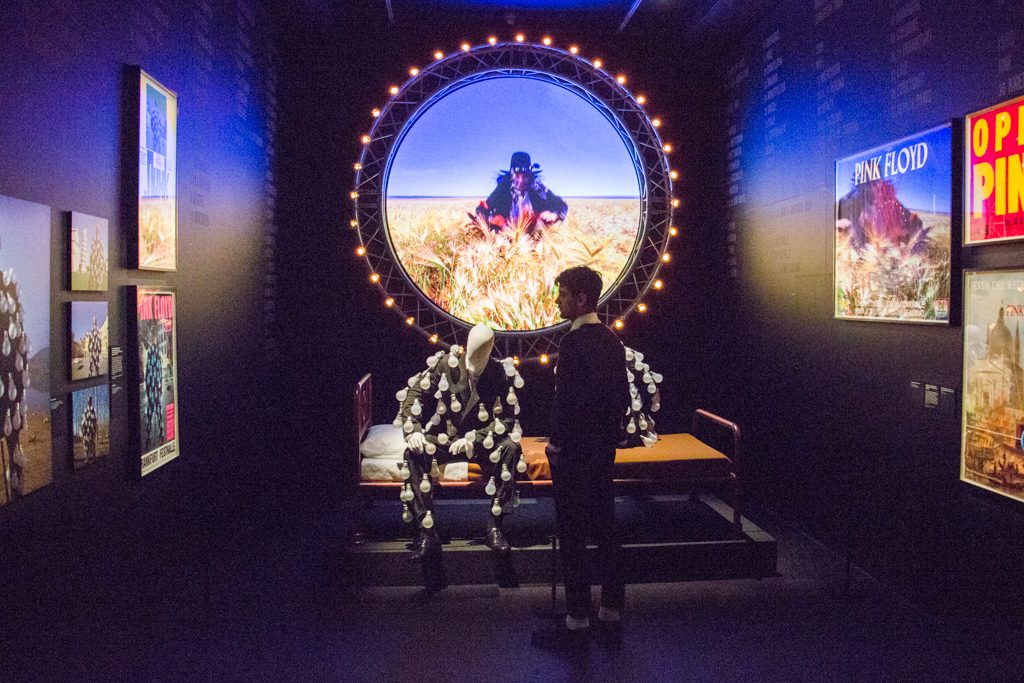 The carefully curated spaces chart the group’s rise to fame but also, and more importantly, their musical and artistic development. The first rooms tell the story of their early years, culminating in the release of The Dark Side of the Moon, an album that continues to sell over 7,000 copies a week. This is followed by a helpful pause for contemplation in a darkened room, where a holographic rendering of the album’s iconic artwork is accompanied by the song Breathe.