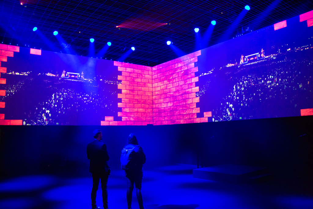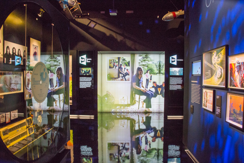 The carefully curated spaces chart the group’s rise to fame but also, and more importantly, their musical and artistic development. The first rooms tell the story of their early years, culminating in the release of The Dark Side of the Moon, an album that continues to sell over 7,000 copies a week. This is followed by a helpful pause for contemplation in a darkened room, where a holographic rendering of the album’s iconic artwork is accompanied by the song Breathe.