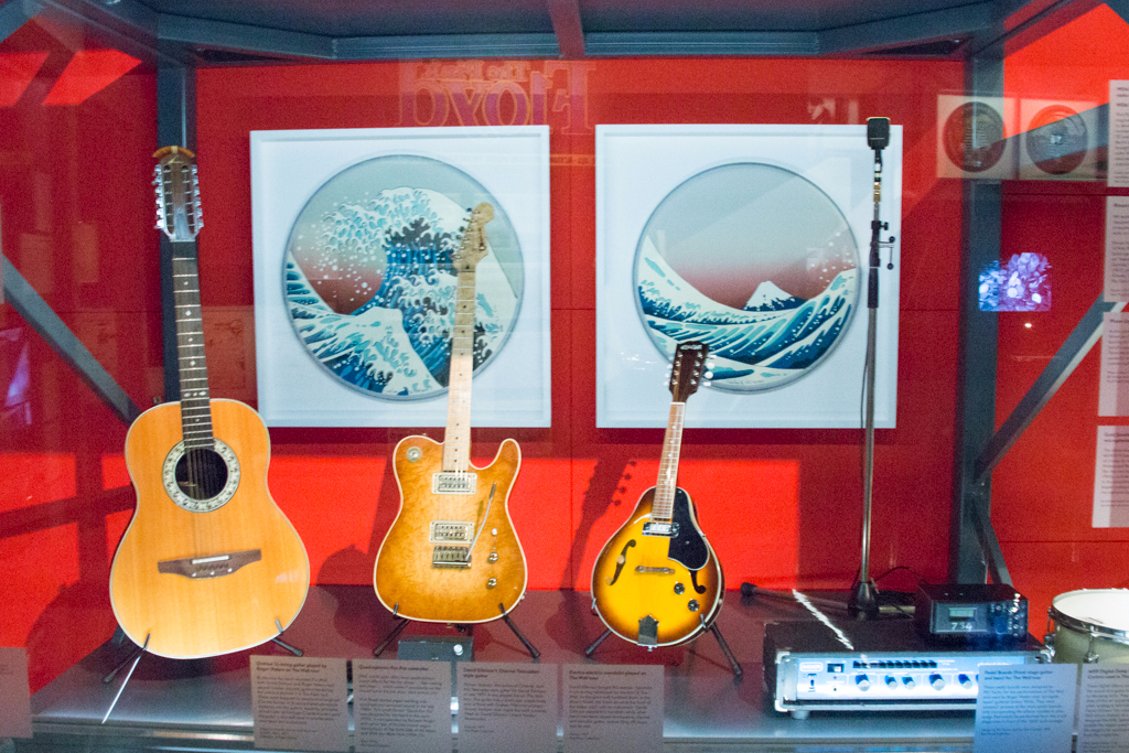 This sets a surprisingly poignant tone for the beginning of the exhibition; as it goes on to explain, Syd Barrett soon found success (and the LSD he was taking) too much, and mental health problems forced him to quit soon after they hit the big time. Once he had been replaced by David Gilmour, one might think the band was set for life. But change is one of Pink Floyd’s key characteristics, as this show makes clear.