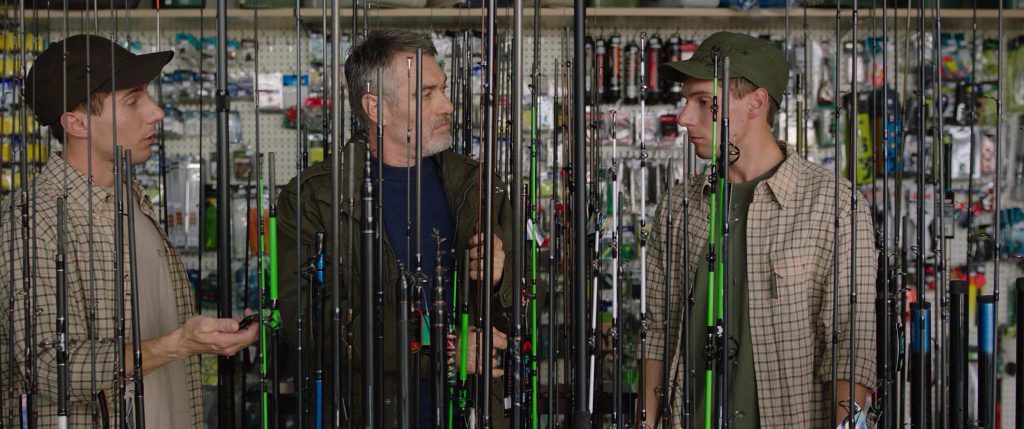 Ágoston leaves his wife (Éva Bandor) and daughter (Judit Bárdos) at home for his journey into the Baltic States. Quickly, both family members seem to be doing just fine without him. His wife has replaced his armchair with a large plant; his daughter has found a boyfriend. The stable domesticity seems to prevent Ágoston’s return, even when losing his new job in the new country after a heavy drinking session with a Santa Claus lookalike. Stranger people occupy him on his peculiar, disaggregated path of development. Grass-picking Gaida (Guna Zarina) attends a metal concert with him and offloads a hideous, earless taxidermy rabbit. We never see her again. Next, a borderline unhinged Russian (Viktor Nemets) offers to drive Ágoston north in order to fish. Instead, the wild-eyed loudmouth takes him to a shrine dedicated to his wife and then on to his isolated and unfinished home. There, the surgically disfigured partner (Ieva Aleksandrova-Eklone) actually resides. Kristóf depicts her as a monstrosity, with lips the size of two prime steaks piled on top of each other – this comes across as a little sneering, unfortunately. The setting, however, creates the most extraordinary scene in the film as the incongruous trio imbibes vodka to the point of conflict. As tempers rise, we can only eye the ugly, gauche portraits of the couple on the wall. These paintings are truly a wonder, although Ágoston won’t have long to appreciate them.