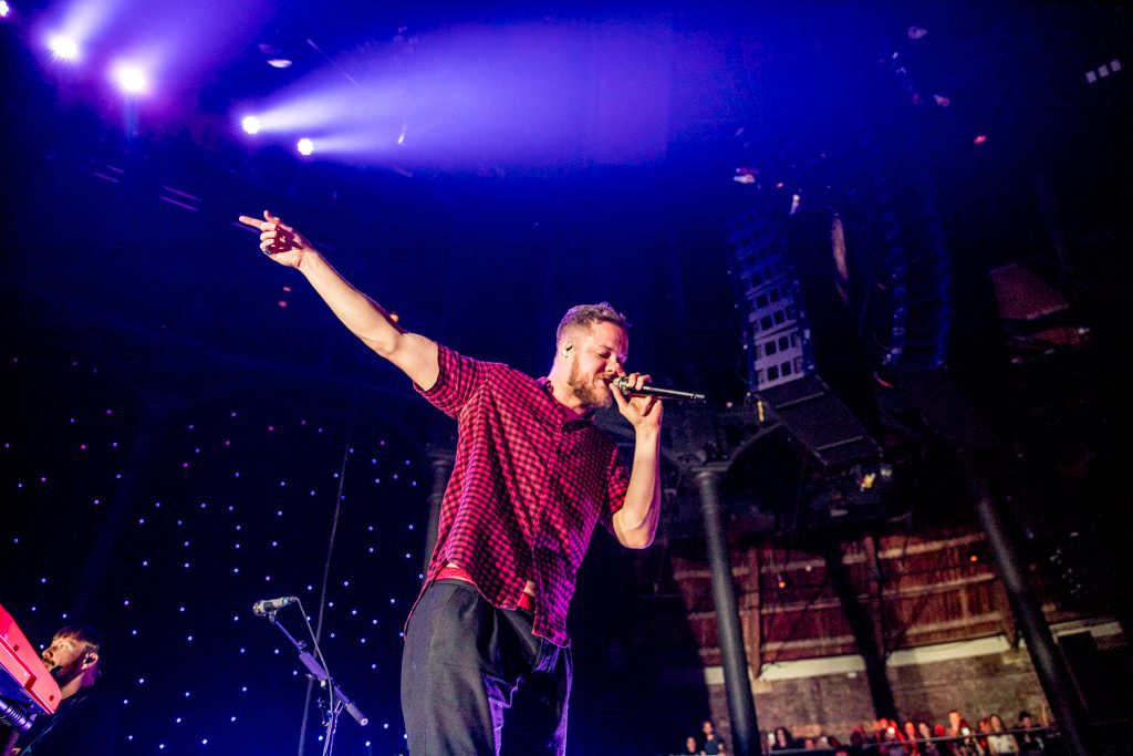 Imagine Dragons choose London for their comeback. Saving for some festival and TV appearances, this is their first actual show in a year, with fans queuing as early as four in the morning to be right by the front. Teasing their audience with a 20-minute delay, the Las Vegas four-piece enter the Roundhouse playing Thunder, the power pop single from their latest record Evolve, due for release on 23rd June.