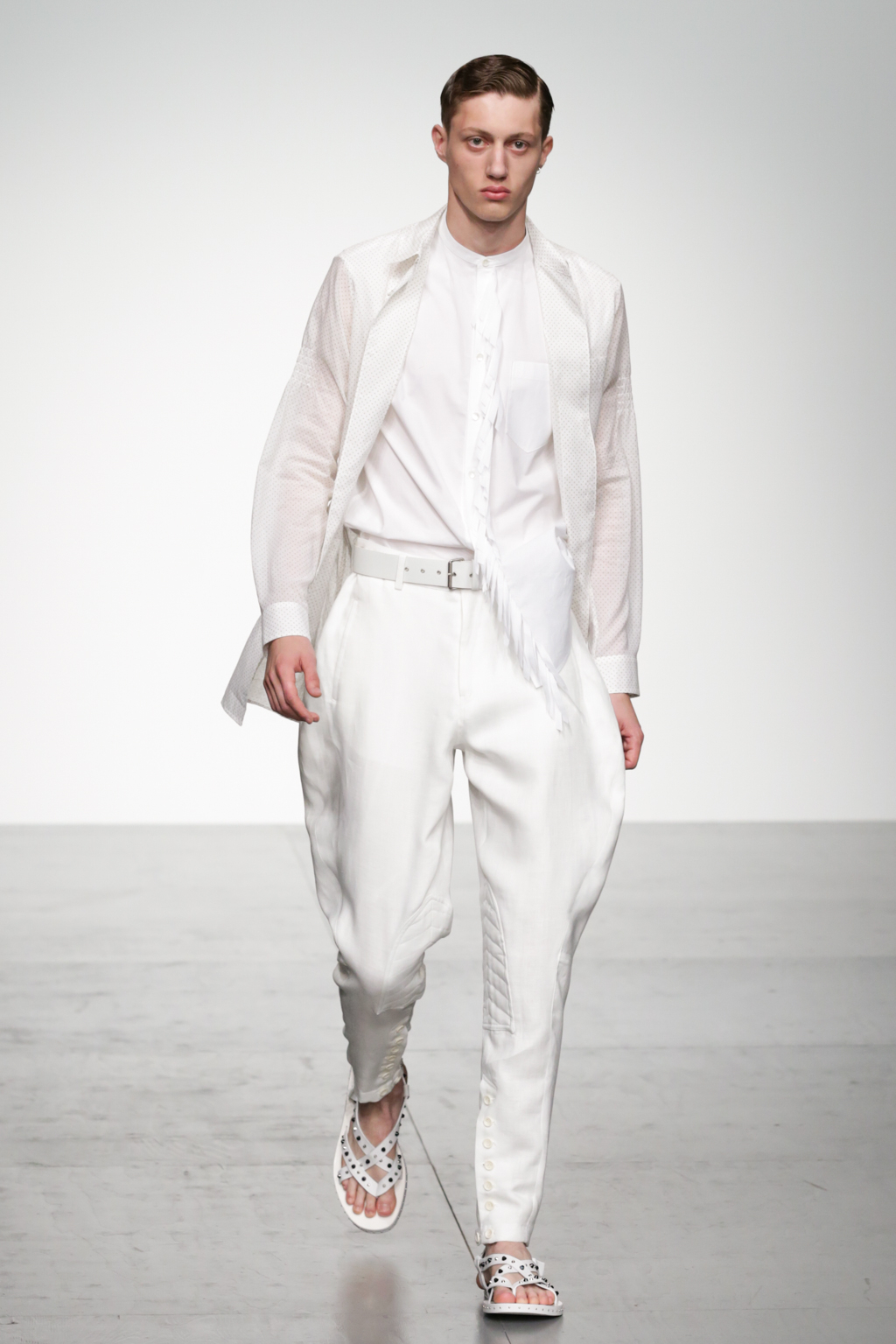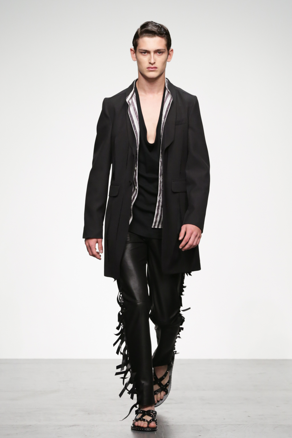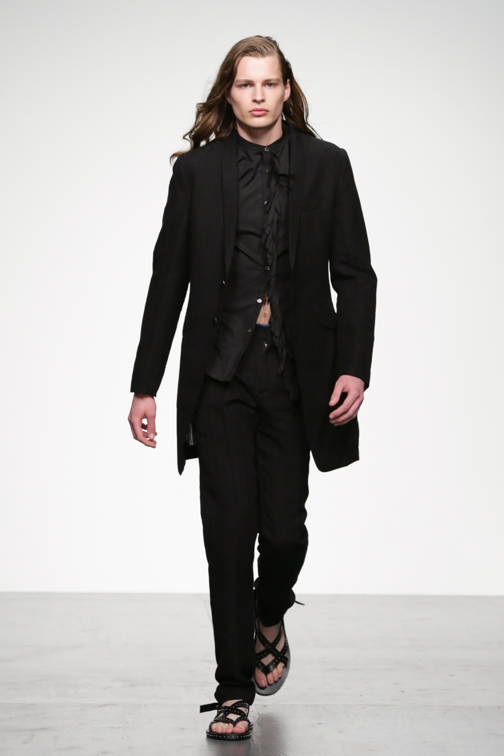 This mixed collection also debuted straight legged leather tassel trousers, sheer tunics and derby-esque footwear. Judging by the T-shirt and suit combinations, Song’s muse might have foregone a mirror check whilst trying to find his feelings. Nevertheless, he has some great pieces in his wardrobe.