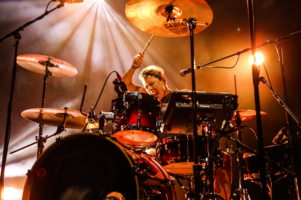 The concert began with a very theatrical and futuristic introduction, including creepy child voices and flashing lights, which would have been an allusion to Babes Never Die. The rest of the show featured some really awesome light arrangements that fitted well with the themes of the songs, and moving spotlights that looked a lot like the light sensors seen in a bank heist movie. A screen behind the band displayed various woodland-like images, and although most of the time we couldn’t actually catch these images, what could be seen did really add to the visual atmosphere.