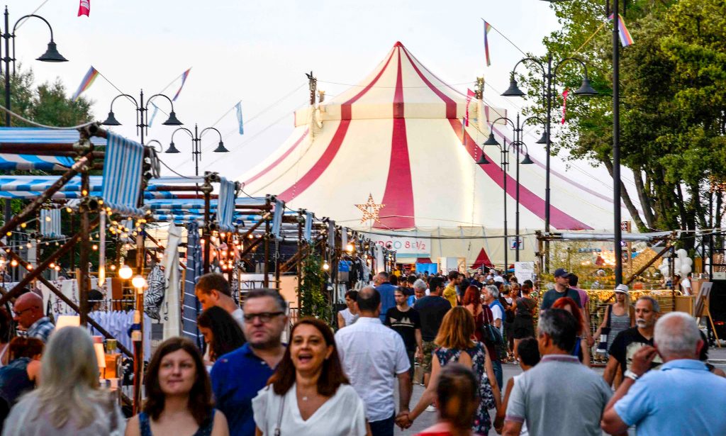 This is, after all, a food event for everyone. Bringing together some of the region’s most exciting chefs with young talents from across the world, it’s designed to showcase some incredible concepts at street food prices. And, for once, the ambitious and glowing press release is actually laid out in front of us in the flesh. Those are not the words of PR spin, but rather an honest and deservedly proud description of what has been put together here. The main stage is a circus-like tent, aptly named Circo 8 e 1/2 to honour the masterpiece of Riminese director Federico Fellini.