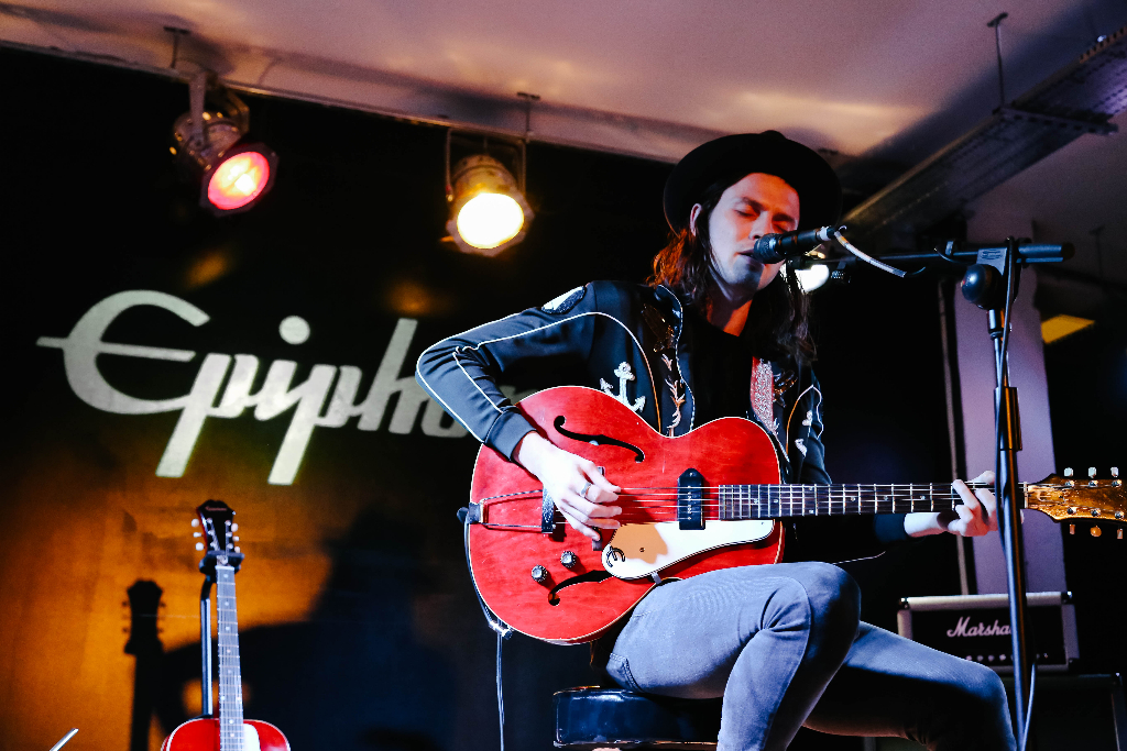 James Bay presents signature Epiphone 1966 Century guitar at intimate live show