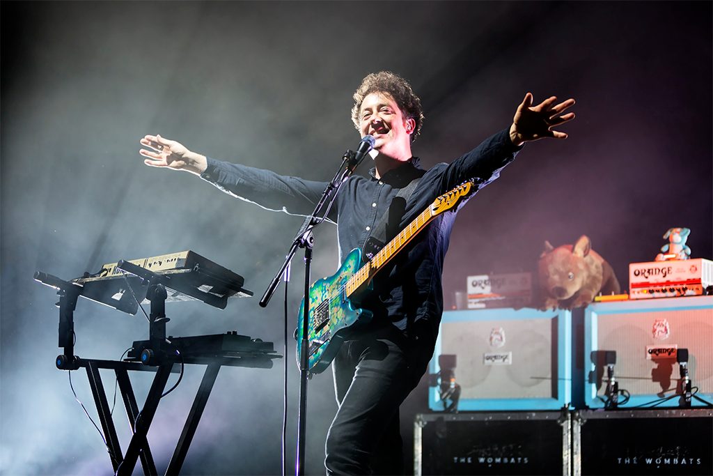 Striding onto the stage, beaming, the trio opened with the second track of their debut, Kill the Director. Rallying cries for Jeremy Corbyn and teasing riffs of The White Stripes elicited new waves of applause. Frontman Matthew Murphy strutted, looked moody, and played with his indie-boy puff; bassist Tord Øverland Knudsen stunted with his guitar and couldn’t stop smiling. They looked like teenagers having the time of their lives and that joy was contagious. Staying true to a stream of indie dance-floor reliables, The Wombats know how to hold a crowd, and as the third song, 1996, opened, middle-aged men spilt their beer and belted out “I had no care in the 1990s” louder than the frontman himself.