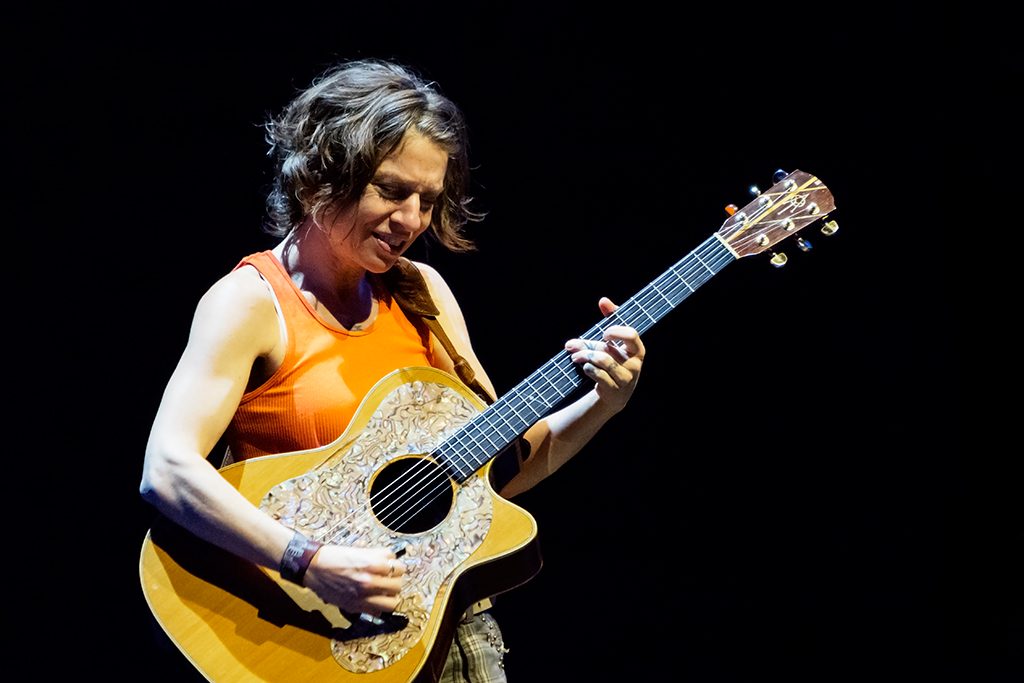 Not A Pretty Girl is an ode to feminism, as DiFranco sings, “I am not a pretty girl, that is not what I do. I ain’t no damsel in distress, and I don’t need to be rescued”. Names and Dates and Times is a free-spirited track, displaying her signature rapid strumming and finger-picking techniques. The artist introduces a poetic spoken word performance into her set, Grand Canyon, covering historical martyrdom and expressing gratitude for the lives we are able to live now, owing to the amazing bravery of our predecessors. This makes for a unique break in the conventional music sets of recent live shows, and exhibits DiFranco’s lyrical flair. Napoleon is moderately quick in its melody, whilst Even More, Zizzing and Grey are softer tunes in comparison, the latter a beautiful reverie of a track. Binary is a funky soul addition, both a fun song to listen to and watch, as several audience members begin dancing in the aisle. It comes to a rollicking crescendo, the instruments coalescing brilliantly.