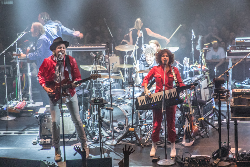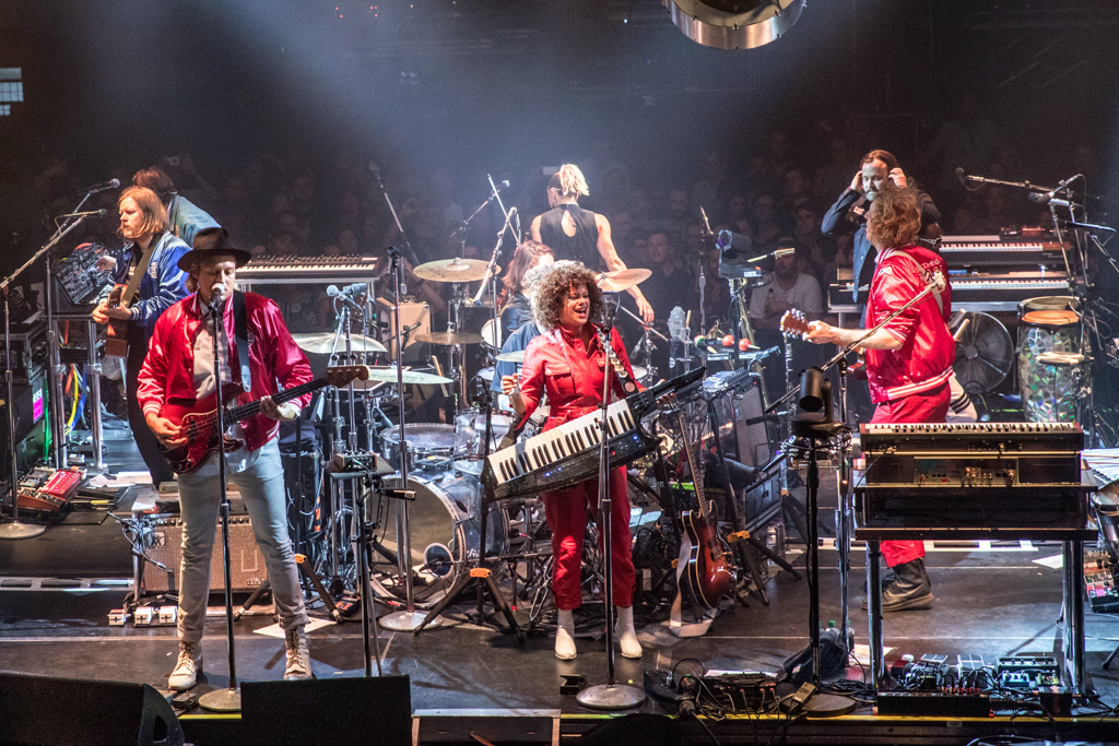 However, the show is beyond exciting, the intimacy of the venue heightening the grandeur of the performance. For those who aren’t familiar with an Arcade Fire concert, it consists of a crazy interaction between a bunch of multi-instrumentalists (six core members plus a few touring ones) who swap instruments and, essentially, have loads of fun with them – and with theirs fans.