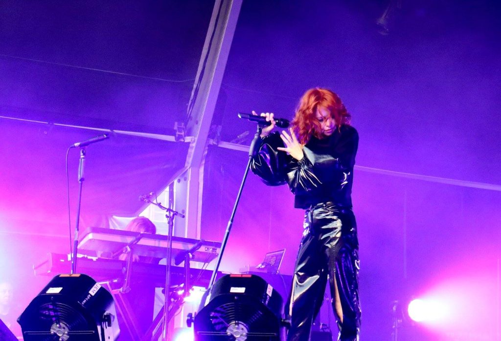 The show begins with Utopia, a calm and rhythmically slower song from Goldfrapp’s usual dance electronica music. Lovely Head, with its sweet whistles, reminds one of an American Western, but takes an interesting turn with the beguiling mixers, creating an otherworldly sound. Alison’s voice is saccharin, producing an image of 1950s ballroom dance songs. The set changes tack with new single Anymore taken from Silver Eye, their latest album. The signature style of Goldfrapp is clear, with the booming synthesisers and electronic drum beats. The stage is alight with red and orange flashing beams, synchronised with the infectious chorus. Ocean has a 80s dark goth rock quality to it, in the vein of bands such as Clan of Xymox and Sisters of Mercy. You can hear the influence of co-producer experimental industrial musician Haxan Cloak. Moon in Your Mouth is placid, a contrast to the faster paced previous tracks – the vocals buoyant on the synthesiser’s textures.