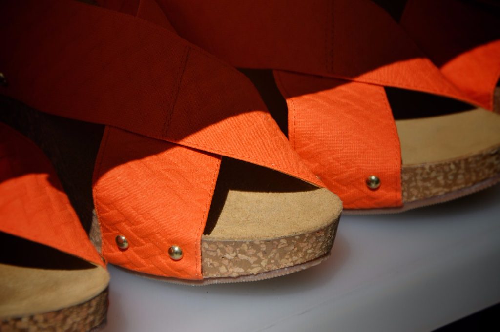 These floral sandals will add a feminine touch to your look. Mix it up with some fishnet socks to broaden the horizon of “girly”.