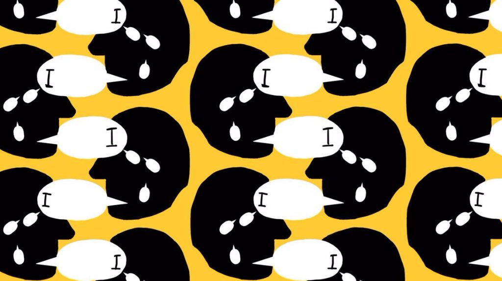 Upon close inspection, each pod, or lamp, is a kind of macrocosm unto itself, expressing different aspects of the feminine psyche. With gorgeous ceramic shells, the interiors are painted with various symbolic motifs, touching on the perhaps more secret elements of the female experience, such as envy. I Want What You’ve Got, Even When I Am Asleep (2017) depicts seemingly textile design-inspired images of green women shackled by Venus flytraps with green eyes hovering over them, watching. I,I,I  portrays faces with teardrops all uttering only one word, “I”, as if to represent our isolation within ourselves, a human tendency to perceive life through prisms of narcissism and the pain of our separateness. Other works display variations of sly comments on womanhood, such as converging curves, mutations of McDonald’s arches into pink breasts – hinting at the commercialisation of femininity as well as prosaic banality in motherhood – or a red-splashed interior with hands holding eggs, appearing to be about menstruation and fertility