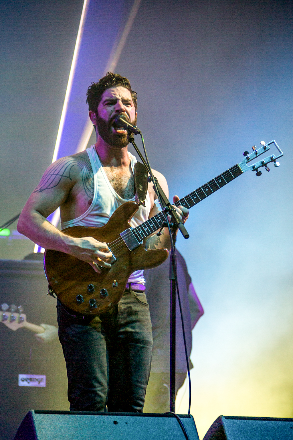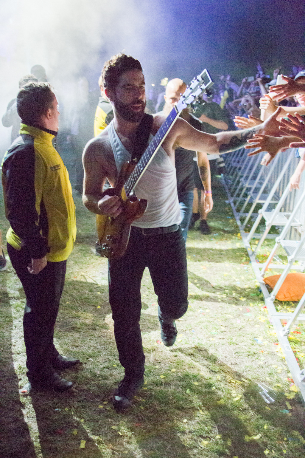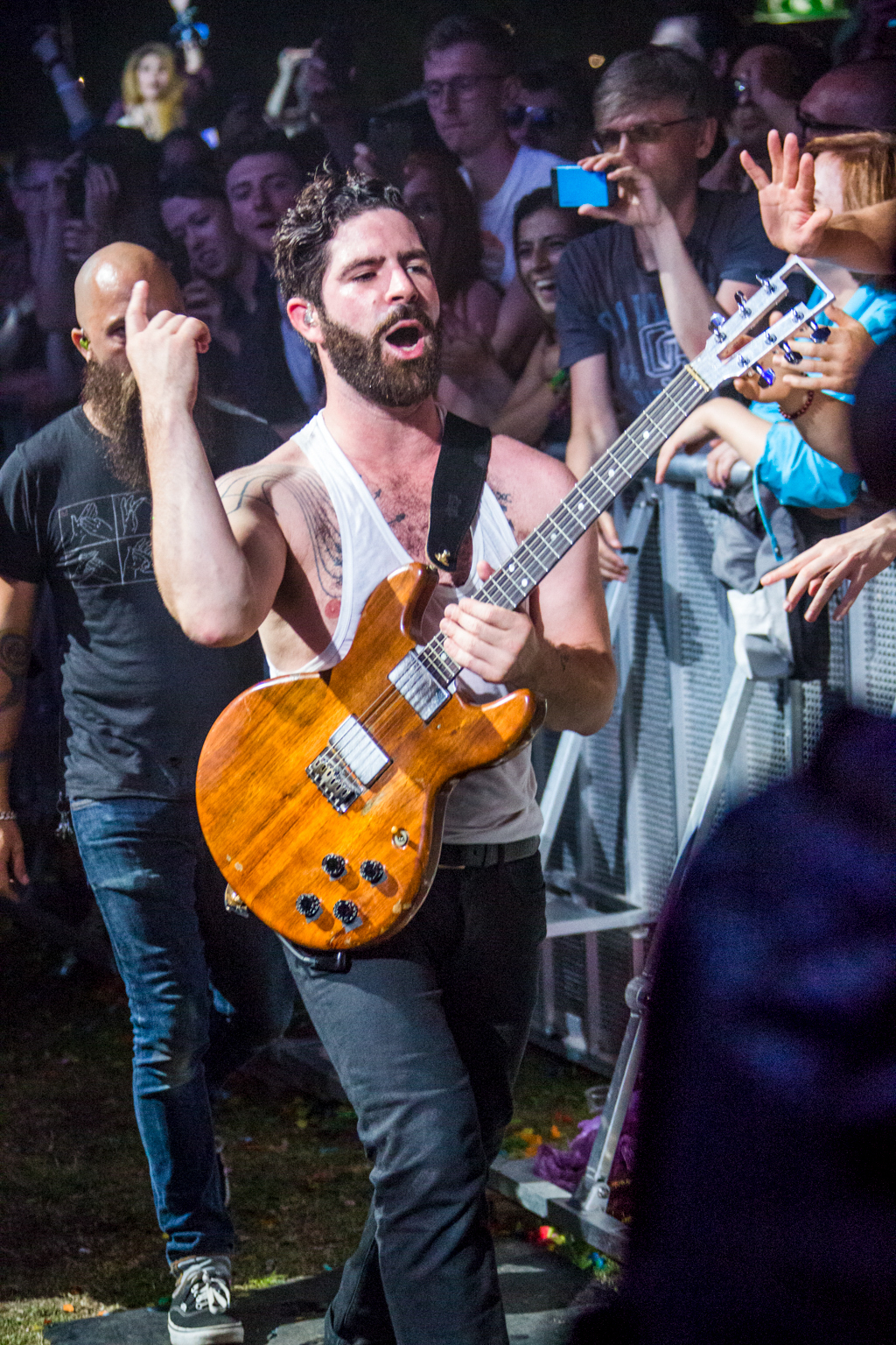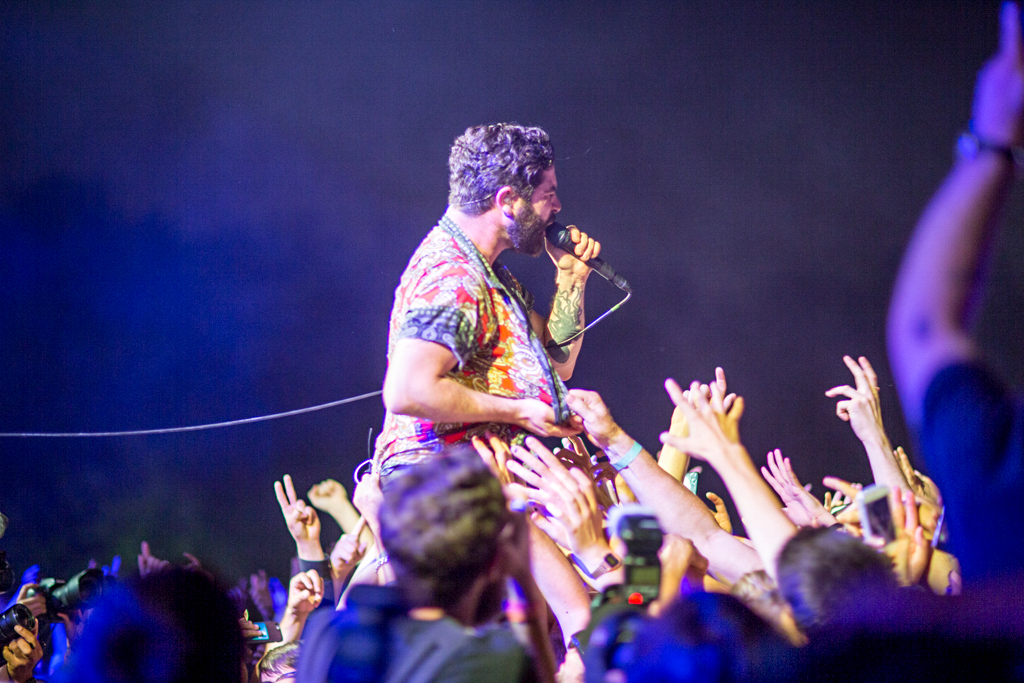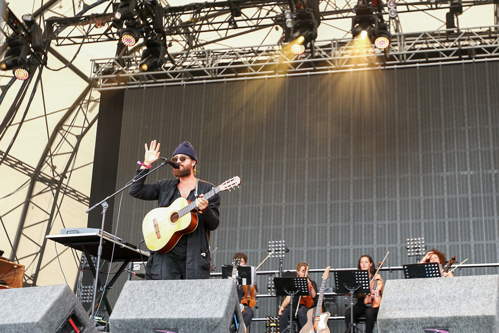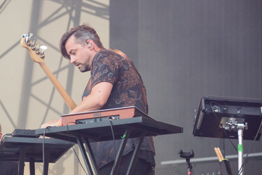 But it was Foals that lifted the festival out of “chillaxed” Sunday vibes firmly into wild party-on-a-school-night territory. They delivered a blistering set of unadulterated British rock, exceptionally produced visuals projecting the band at work in stylised colour and glory and roaring vocals delivered with infectious energy from frontman Yannis Philippakis from first track to last sweaty plunge into the audience. Opening with Mountain at My Gates, we heard most recent album 2014’s What Went Down as well as previous releases including memorable indie classic from Holy Fire, My Number, 2010’s Spanish Sahara, 2008’s Red Sock Pugie, ending on the brilliantly angry guitars and reverberating lyrics of 2012’s Inhaler: “So can you not go away/ If just for one day”. And just when the crowd were starting to feel guilty that they should already be tucked up in bed, Foals re-climaxed with album title track What Went Down and 2008’s Two Steps, Twice to strobe lighting and what appeared to be the world’s biggest party popper spewing streamers across a mind-bent crowd. Raw and explosive, this was live gig perfection.