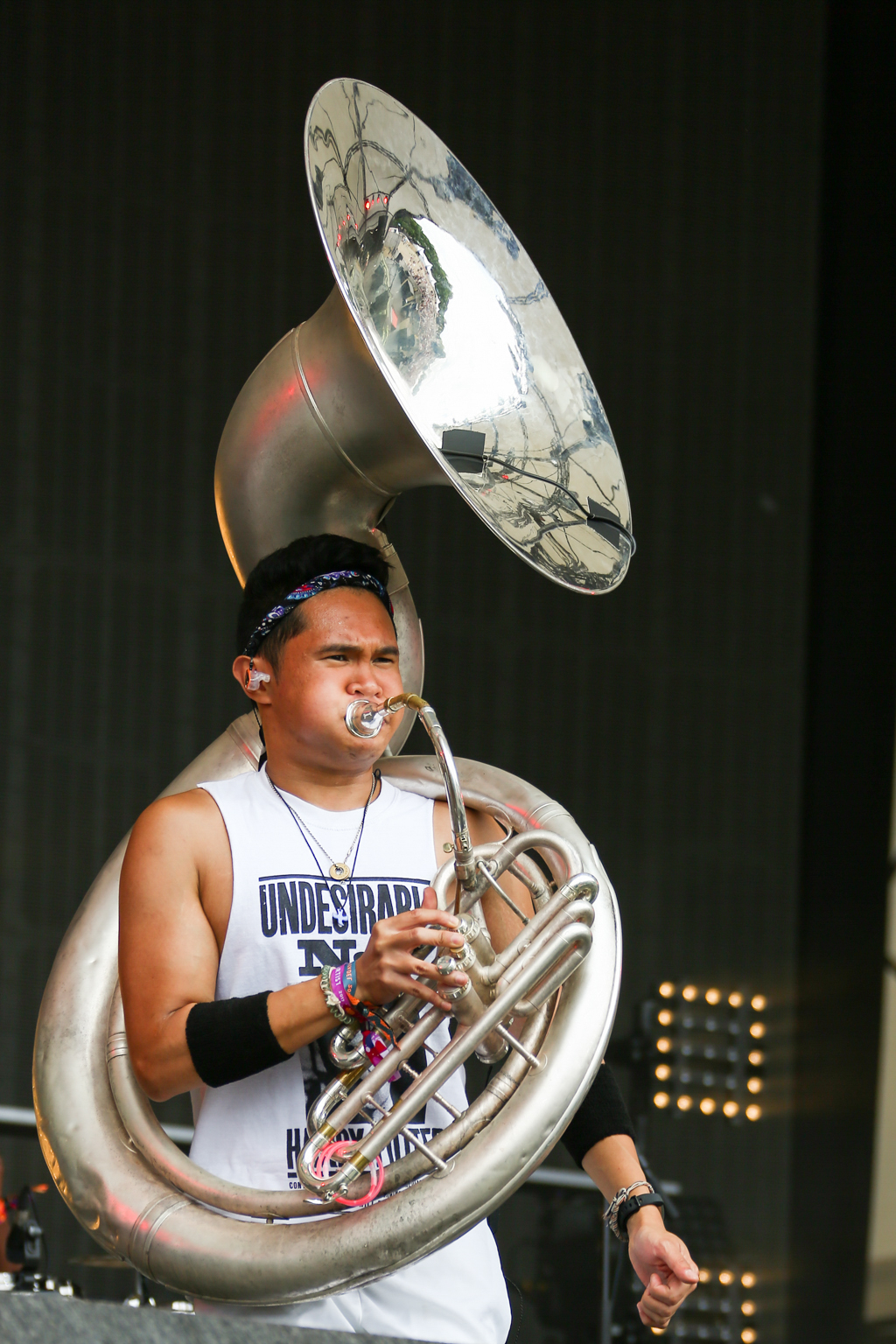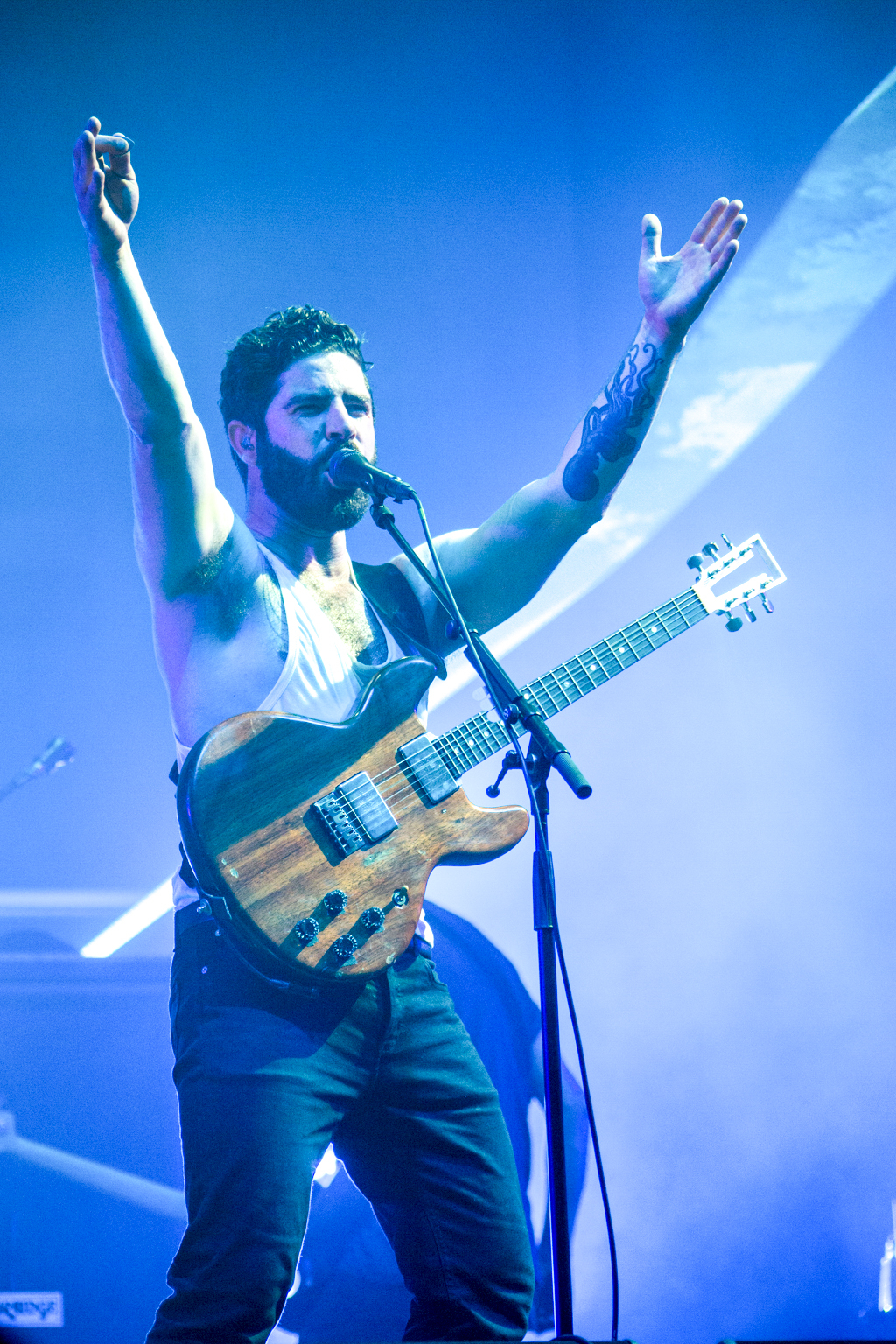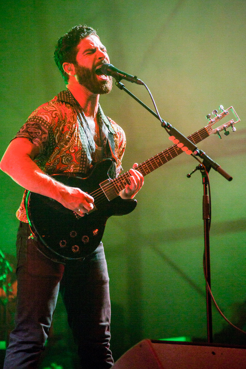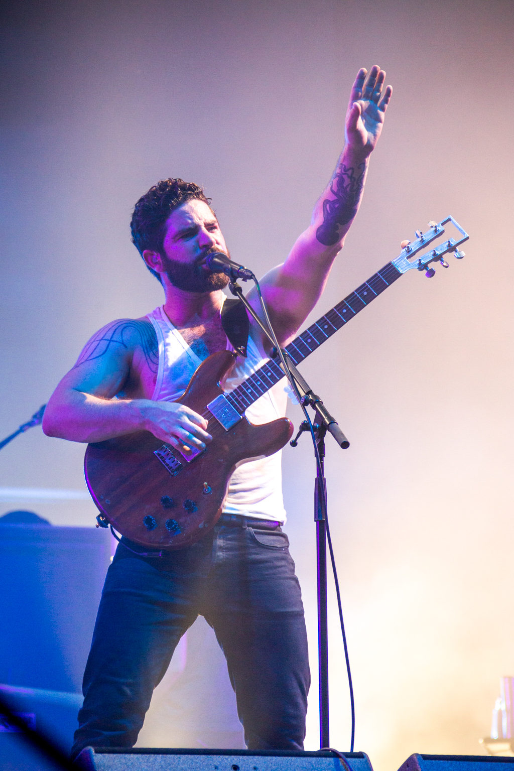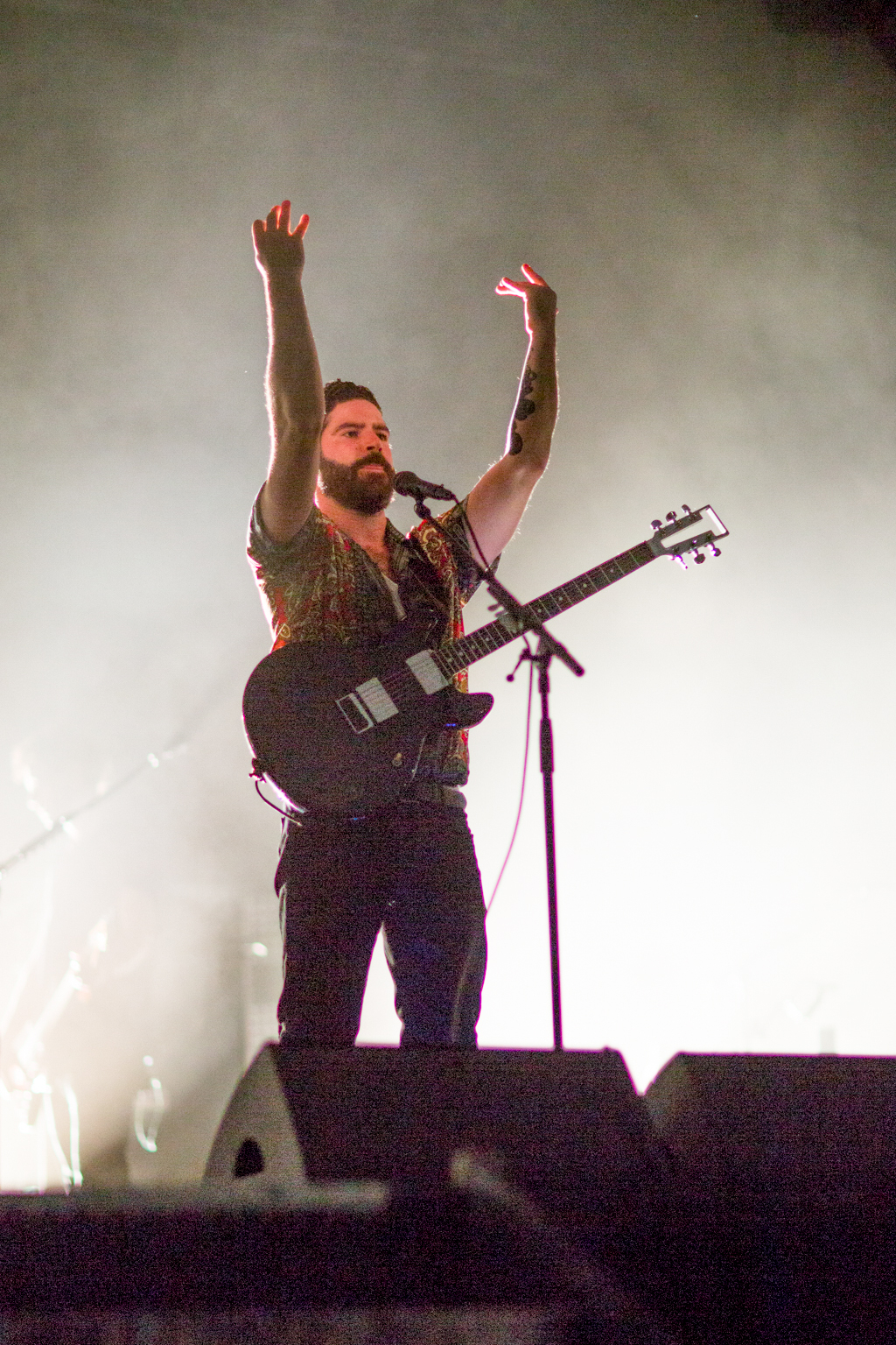 But it was Foals that lifted the festival out of “chillaxed” Sunday vibes firmly into wild party-on-a-school-night territory. They delivered a blistering set of unadulterated British rock, exceptionally produced visuals projecting the band at work in stylised colour and glory and roaring vocals delivered with infectious energy from frontman Yannis Philippakis from first track to last sweaty plunge into the audience. Opening with Mountain at My Gates, we heard most recent album 2014’s What Went Down as well as previous releases including memorable indie classic from Holy Fire, My Number, 2010’s Spanish Sahara, 2008’s Red Sock Pugie, ending on the brilliantly angry guitars and reverberating lyrics of 2012’s Inhaler: “So can you not go away/ If just for one day”. And just when the crowd were starting to feel guilty that they should already be tucked up in bed, Foals re-climaxed with album title track What Went Down and 2008’s Two Steps, Twice to strobe lighting and what appeared to be the world’s biggest party popper spewing streamers across a mind-bent crowd. Raw and explosive, this was live gig perfection.