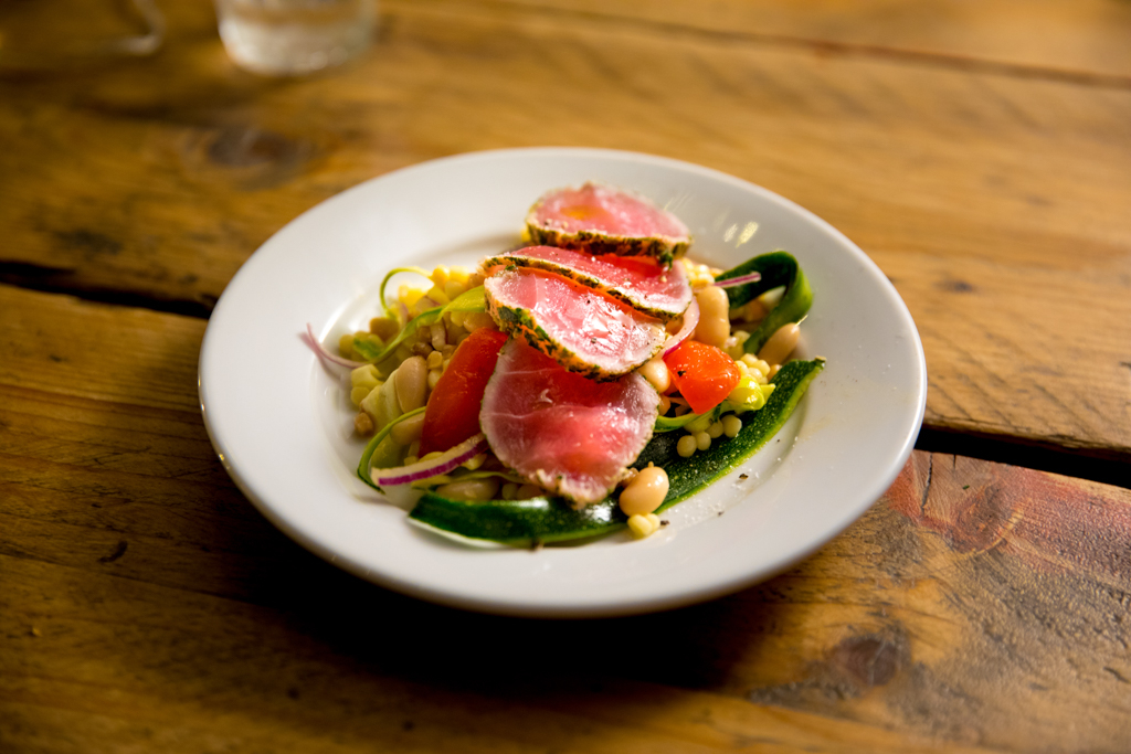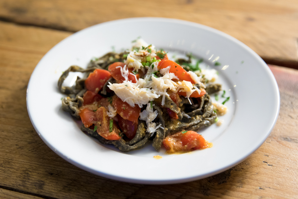 Squid Ink Pappardelle with Crab and Lemon is thick with tangles of brown crab meat, its sauce full of salty sea air. Close your eyes and you could be anywhere along the coast, ready to eat the morning’s haul coming straight off the boat. Fennel and black pepper-crusted Seared Tuna loin, with fregola, courgettes and cannellini beans salad, is just as fresh, the fish beautifully cooked and thinly sliced. It’s tender, delicate and a welcome reminder of why tuna rewards the lightest touch of the pan with unbeatable texture and flavour.