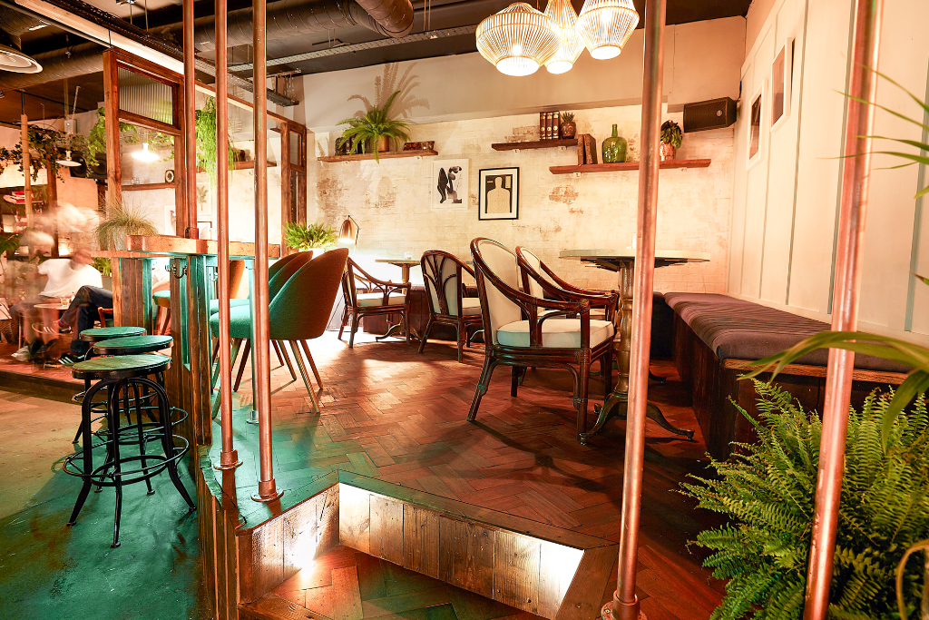 You’ll find Nine Lives in a slightly unexpected location, down a quiet backstreet a short hop from London Bridge, but its pleasingly graphic sign draws you in like a beacon. Down the stairs, and the basement bar is all bamboo furniture, leafy greenery, and soothing shades of teal. It all feels like you’ve stepped into a sophisticated beachside watering hole, which just so happens to be underground. It’s a great place to pop in for after work drinks or for a post-dinner nightcap, with plenty of space for groups to lounge in comfortable chairs and velvety banquettes.