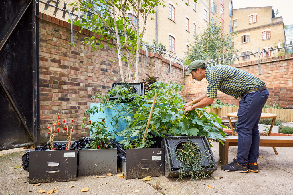 All this is backed up by some serious effort in the sustainability department. A garden at the back of the bar is growing a range of fruit and vegetables, which the team hopes will eventually supply their planned snack menu – it’s lovely to see courgettes, tomatoes, melons, runner beans, and lemons (to name only a few) blossoming on a compact terrace in the shadow of the Shard.