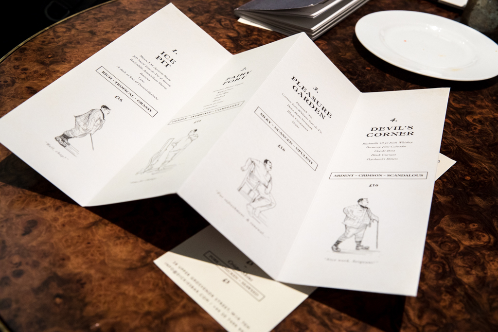 Celebrity chef Richard Corrigan is at the helm in the restaurant, and the revamped bar takes its inspiration from his Irish estate. All of the drinks utilise ingredients that Corrigan grows or aims to grow there, and there’s a strong emphasis on sustainable produce. The menu is split into your standard cocktails, or “mixed drinks”, as they’re labelled, and a selection of highballs – simple two or three-ingredient drinks which all feature sodas handmade in the bar. The life of the estate is affectionately reflected in a series of Punch-style cartoons in the menu, which add a welcome touch of jollity.