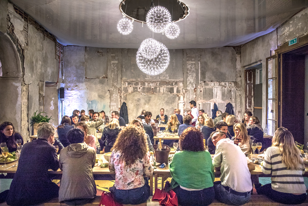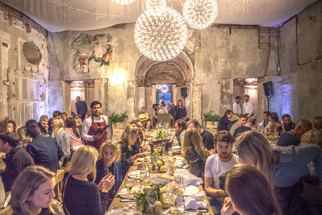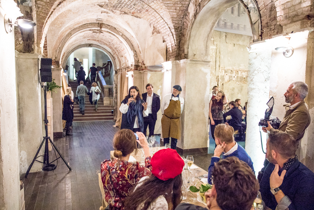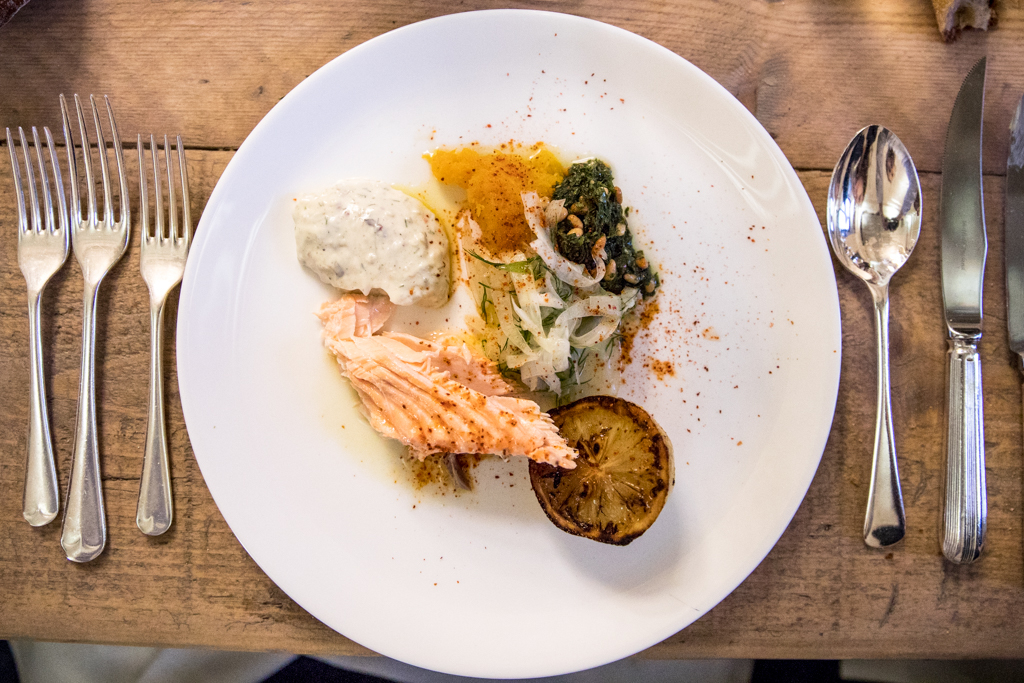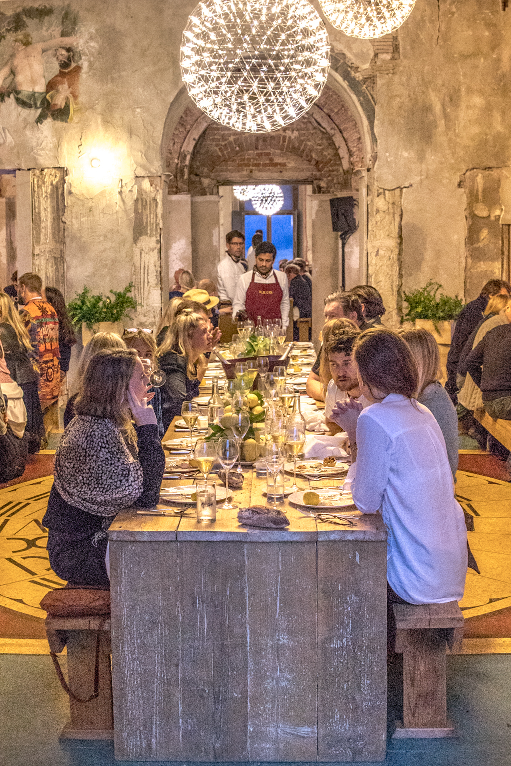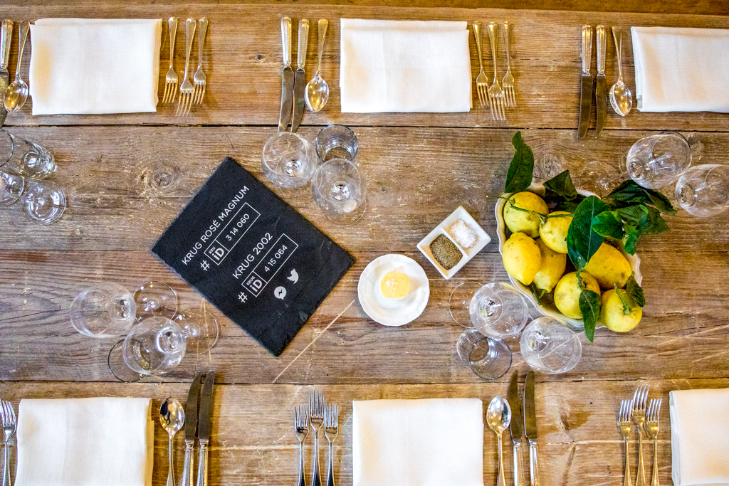 The dinner took place in the charming, decadent rooms of the palace. On every table there was a slate with the id of the two bottles we would have during the meal: Krug 2002 (#415064) and Krug Rosé Magnum (#314060). 2002 is considered one of the best champagne vintages of all time, and the bottle showed it shamelessly: the creaminess of the chardonnay makes the nutty and smoky depth of the pinot noir incredibly pleasant maintaining a unique balance. It’s full of character but its exuberance is sober. The fruity notes and the minerality share respectfully their roles with no attempts to overshadow each other. Hands down one of the best champagnes I’ve ever had. Krug 2002 was paired with a salmon dish where the smokiness of the pit cooking enriched the savour of the slow-cooked fish.