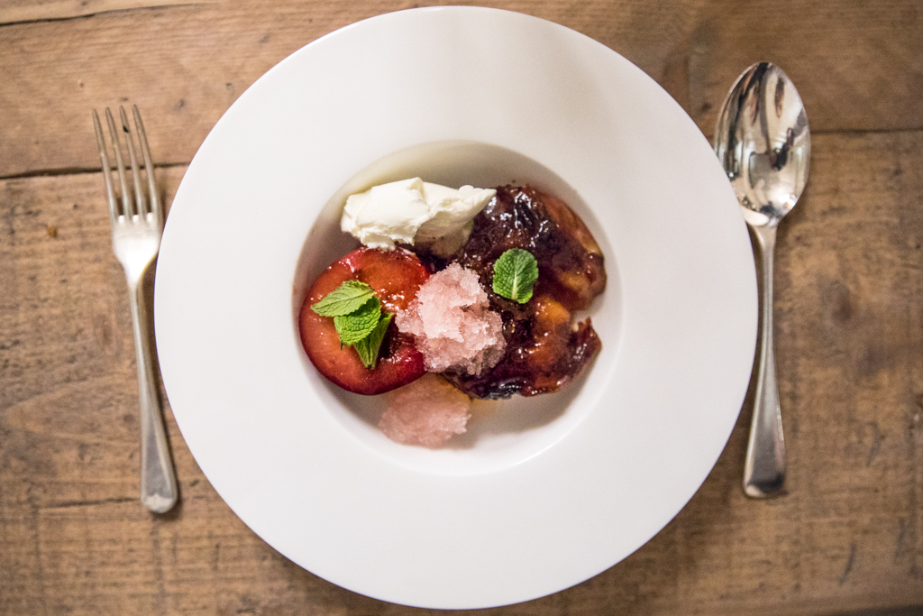The plum and peach dessert was absolutely spectacular. Finished with a drop of Amaretto di Saronno, each fruit was tender, sweet and smoky. A little granita on top gave it a fresh touch. A chef was sitting in front of me and she was speechless.