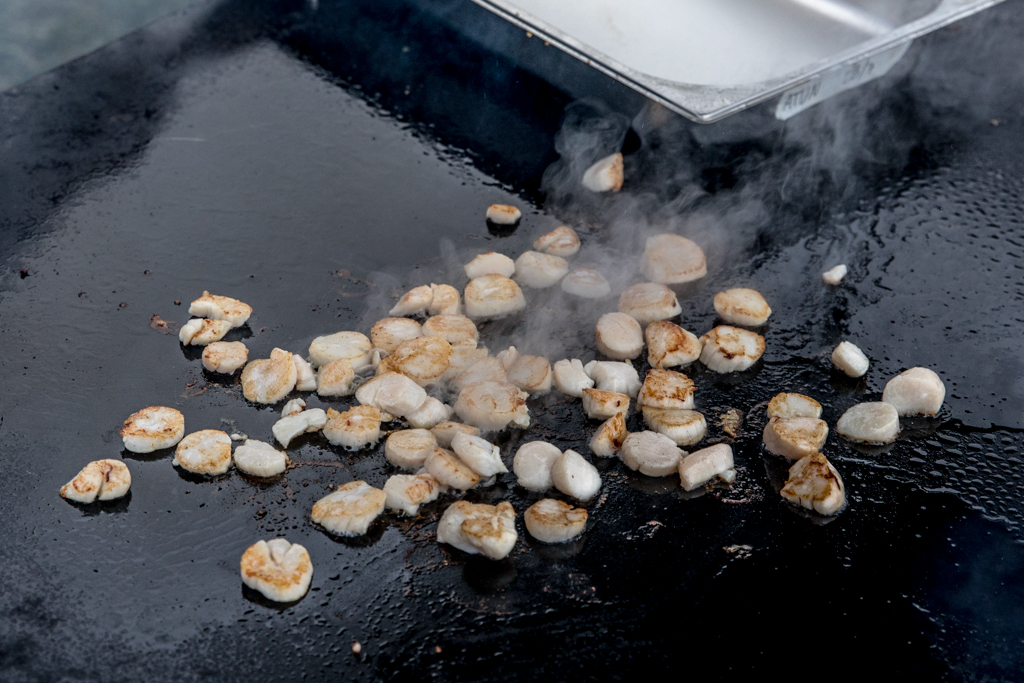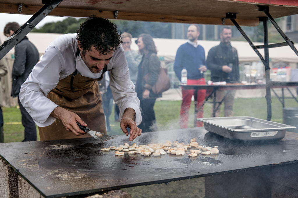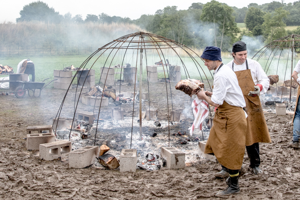 The Grange was the most beautiful setting for this exclusive festival: as the music was playing, guests could walk around the building – with bottles and finger food always available – and down the field to witness the outdoor cooking first-hand. The cooks would happily let you taste the meat hanging over the pit fire; the scallops from a large heated flat metal surface; and the pastries filled with sweet corn.