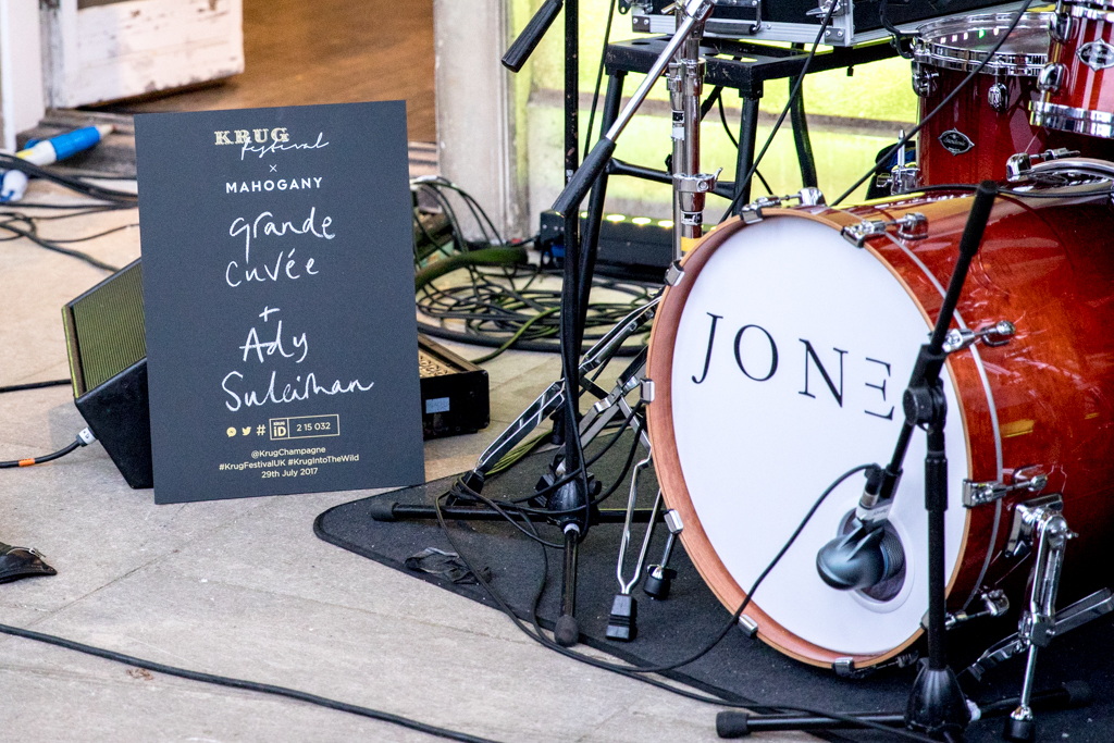 I’ve been to a few events where waiters would top up my champagne glass, without me even noticing, but that concept was taken to a whole new level here: from 5pm until midnight an army of models and actors relentlessly poured chilled Krug (163th edition in magnum size) into the guests’ glasses. Ady Suleiman, hailing from Nottingham, was the first of three artists to perform, his soul touch an exquisite pairing for the champagne and the canapés. The highlight of his eight-song set was the latest single Lean on Me, a beautiful acoustic ballad.