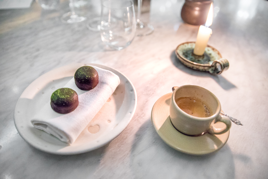 A Cod, Peas, Girolles and Lemon Verbena looks stunning and makes for a nice, simpler transitory serving – in fact, every good chef should remember the value of simplicity. The highlight of the meal is the final main: Aylesbury Duck, Carrot and Chicory. Although little, the bird’s meat is quite frankly divine. It’s also the second time a chef stresses (the other one being the Kitchen Table’s James Knappett) the entire duck is cooked exclusively in a pan.
