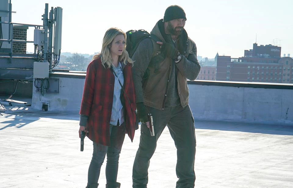 Civil war has returned to America in Jonathan Milott and Cary Murnion’s tenacious action thriller. Texas and the other Southern states are attempting to secede from the USA and ominous soldiers have poured into the New York neighbourhood of Bushwick. Girl-next-door Lucy (Brittany Snow) is forced to transform into a warrior when she steps outside of an eerily quiet New York subway station into a war zone. Bushwick has warped into complete anarchy: bodies line the pavement like slabs and bullets ricochet off cars and buildings. The repetitive bursts of splintering pellets resonate like a percussion backing track, accompanying the amounting tension of an otherwise music-absent film. Amidst the jolts and blows that surround her, Lucy eventually finds refuge in the basement of Stupe (Dave Bautista) a brawny marine-veteran-turned-janitor who hesitantly helps her cross five perilous blocks to her grandmother’s house and safety.