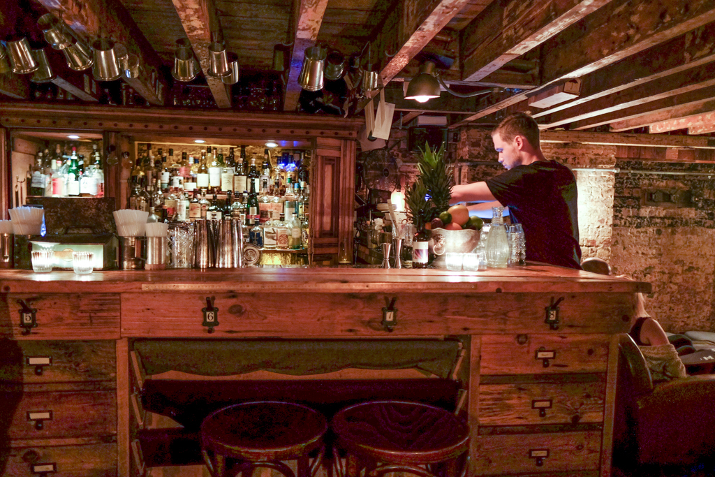 Discount Suit Company occupies the basement of an old suiting warehouse in a slightly dingy street of fabric shops just south of Spitalfields Market. It’s not the most obvious location for a bar, but what good speakeasy was ever easy to find? Negotiate your way past a forbidding bouncer, down a rickety set of narrow stairs, and you’ll find yourself in one of the more accomplished cocktail establishments that East London has to offer.