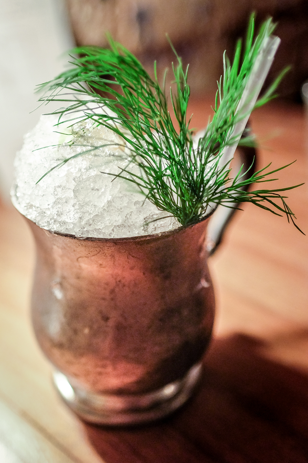 Dill Will Do goes for a similarly unusual Nordic theme, combining aquavit with vodka, dry vermouth, lime, coconut and bitters. Aquavit is still relatively uncommon in the UK, and if any cocktail can convince us of its medicinal virtues, this may well be it. We follow this up with one of its related classic cocktail recommendations, the Silver Bullet, with vodka, caraway-heavy Kummel liqueur and lemon.