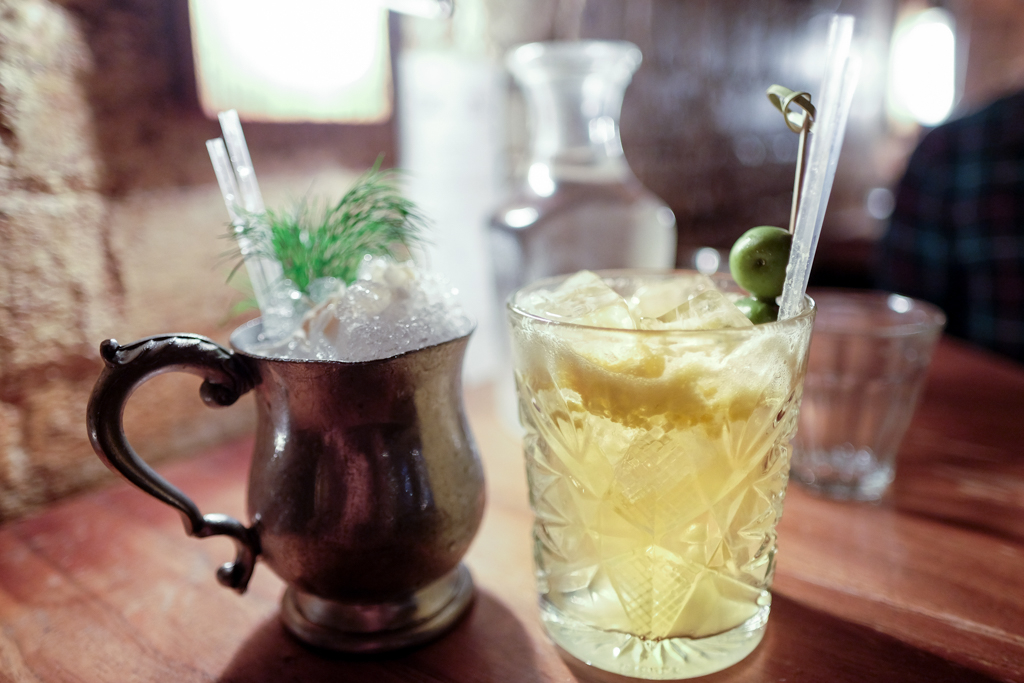 The menu features a frequently changing list of signature drinks, and for each one there are a list of recommendations of classic cocktails you might like on the same theme. The intensely pineapple-y daiquiri variation Teddy Bear, for example, is followed by suggestions for other daiquiri-style drinks you may not have heard of. It’s this kind of helpfulness and attention to detail that puts DSC a cut above many similar bars. On our visit, it was particularly strong on rum cocktails, with plenty of flaming tiki gun runners going around the bar in dinky pewter tankards. DSC takes pride in using a wealth of vintage and esoteric spirits, a roster which changes on the regular, so you never know quite what you’re going to come across. The Manuka Fizz includes trendy fatwashed gin which has been infused with olive oil for a silky mouthfeel, along with equally trendy British aperitifs Kamm & Sons and Escubac. It’s an unusual flavour – clean and delicately herbal, with a touch of spice in the background.