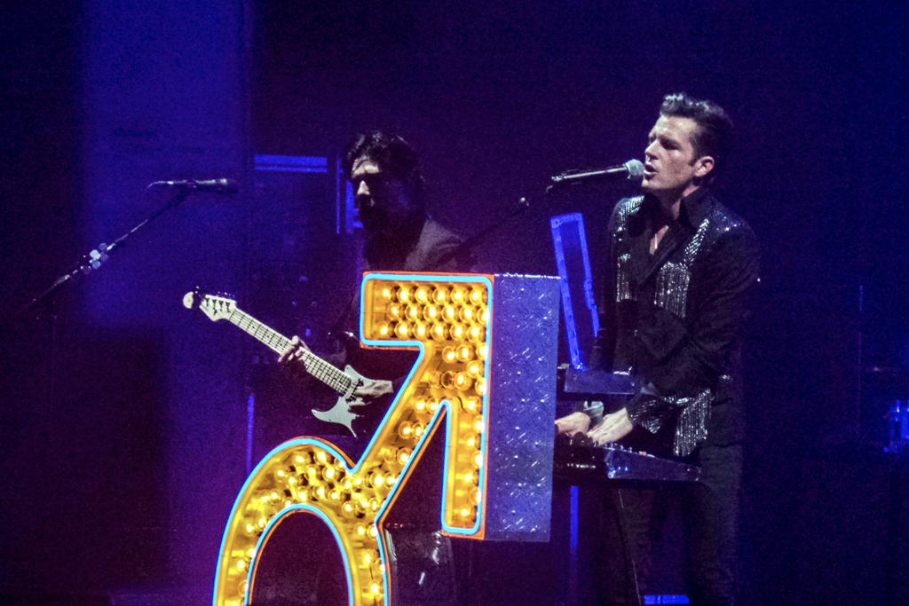 Somebody Told Me is the first hit to bring a huge response from a crowd whose attention span never drops, even when they play slower (but absolutely beautiful) songs such as The Way It Was and Andy You’re a Star. The set list is a journey through their discography, a mix of classics and fan favourites. There are songs that Flowers sings with higher intensity: Runaways, Spaceman, Miss Atomic Bomb and For Reasons Unknown above all.