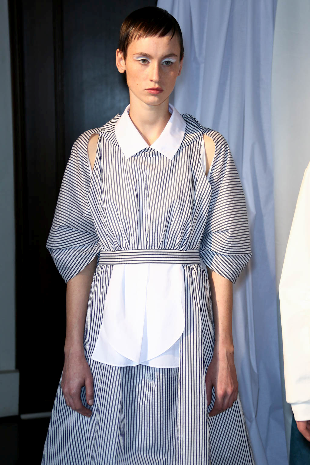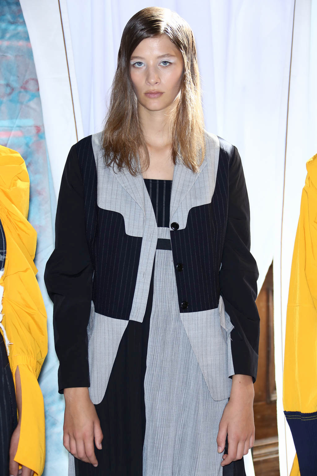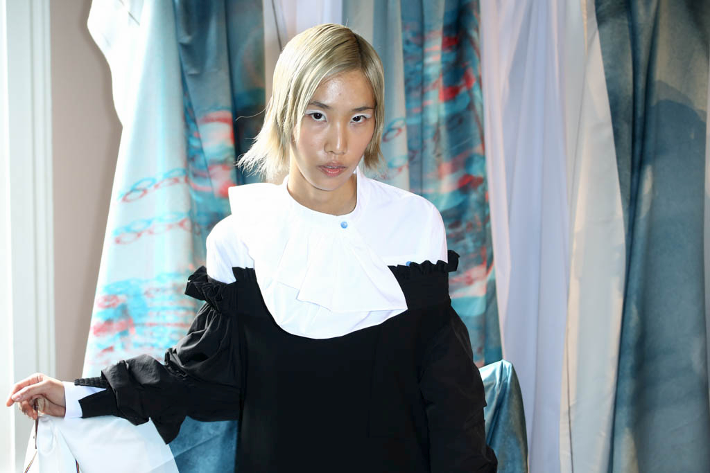 For spring/summer 2018, HAIZHENWANG presents a collection inspired by “the human mistake”, juxtaposing seemingly unrelated fabrics and structures into a multifaceted and multi-layered series of looks, evoking various periods in history for the female form.