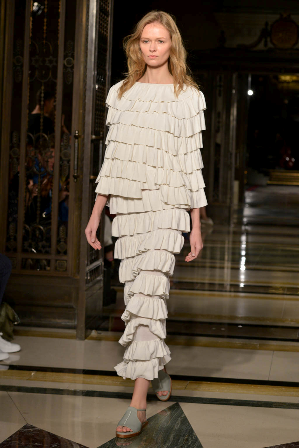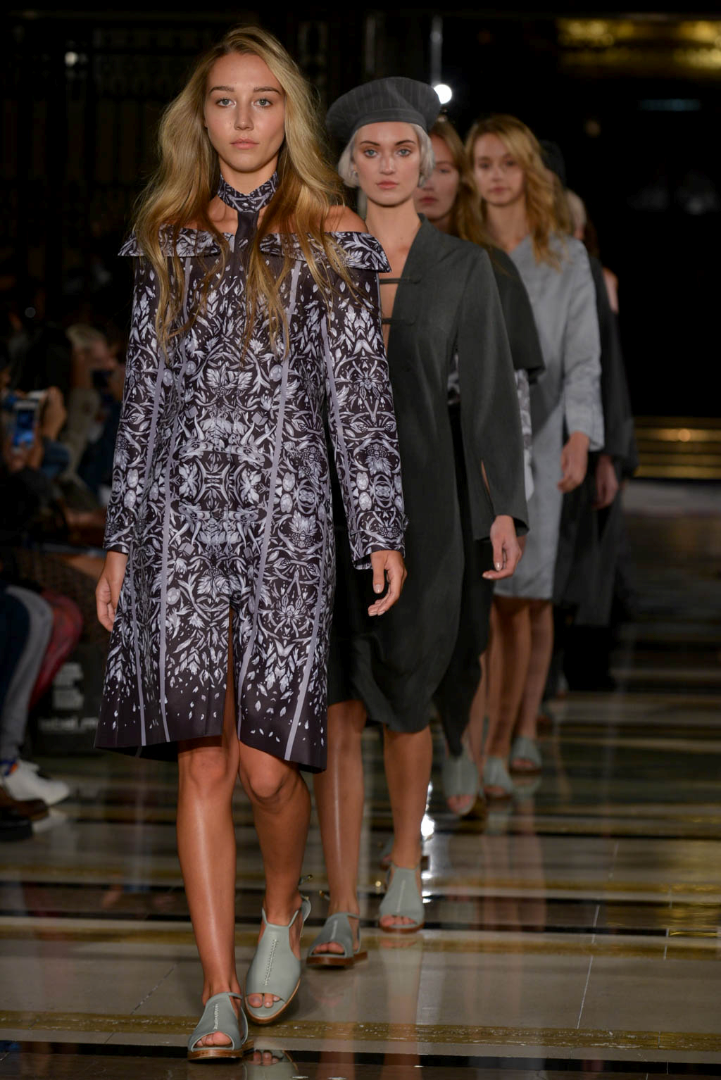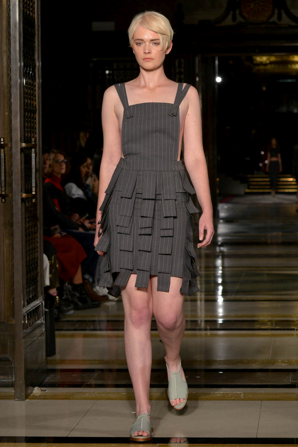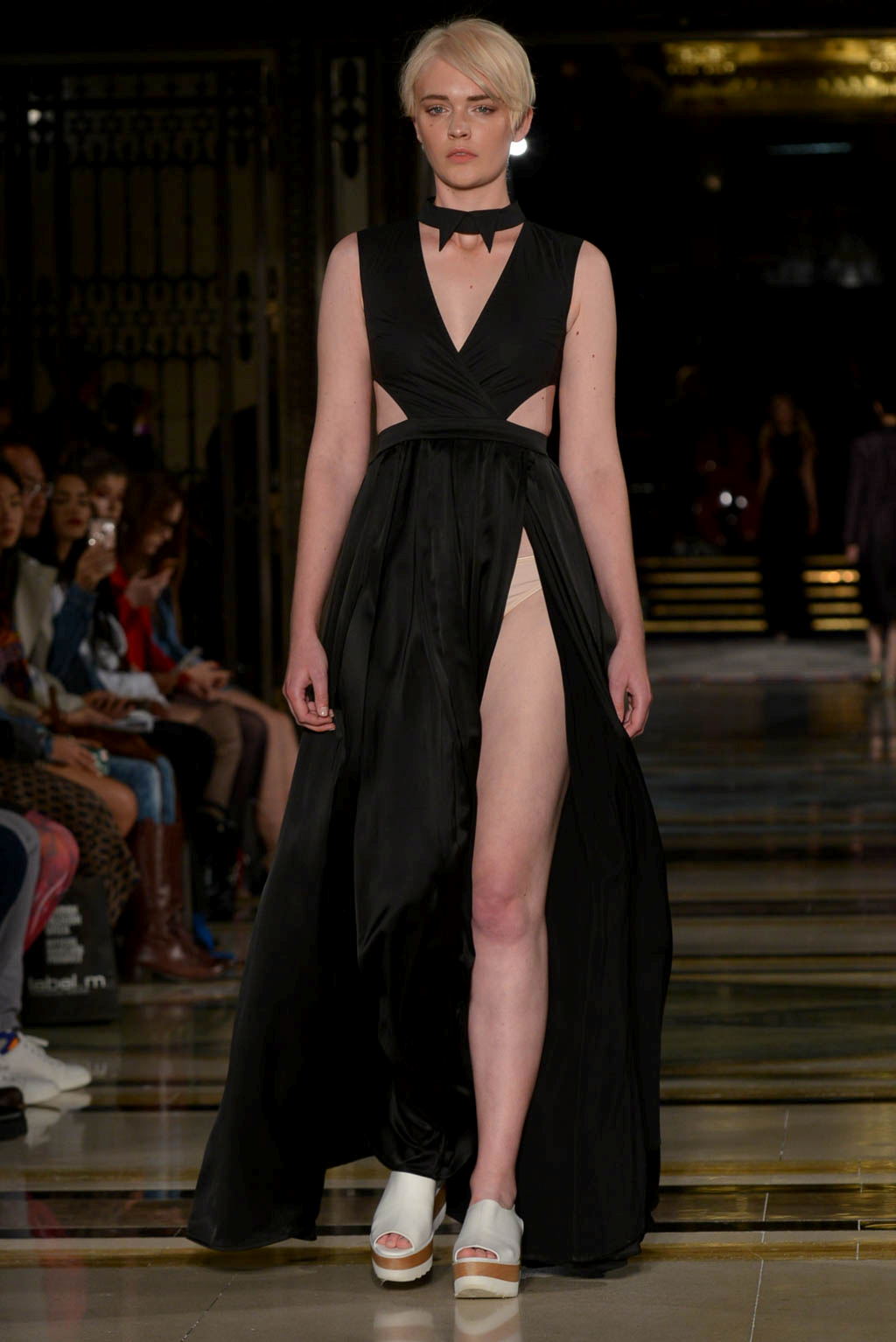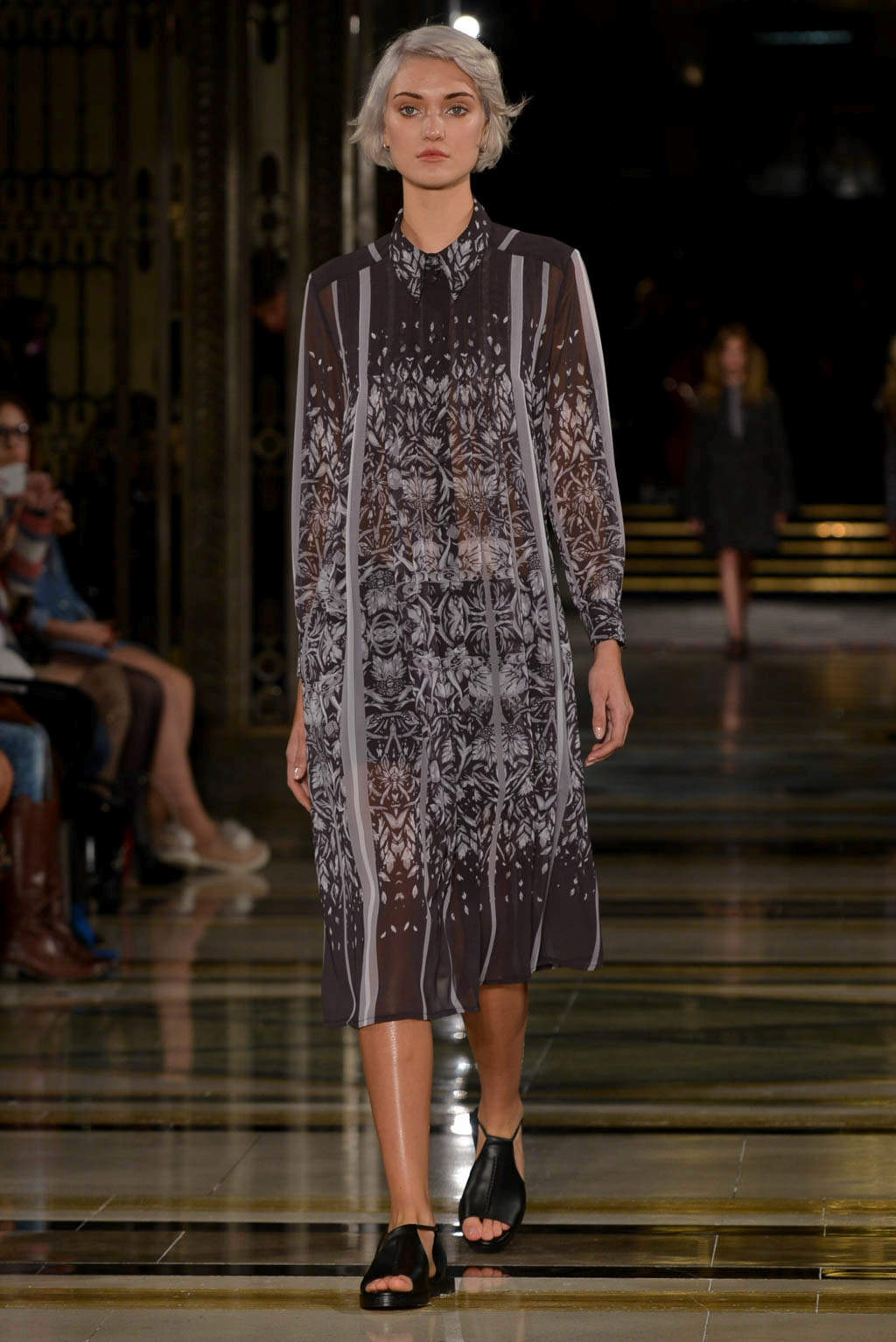 The live music – of the r&b, soul and house genre – created a smooth soulful ambience which could be seen to indicate the extension and freezing of a flowers beauty, but also created a mellow atmosphere. The muted colour palette drew further attention to the level of detail and care given to the garments, whilst the textures imitate the beauty, romance and extended life of the flower.
