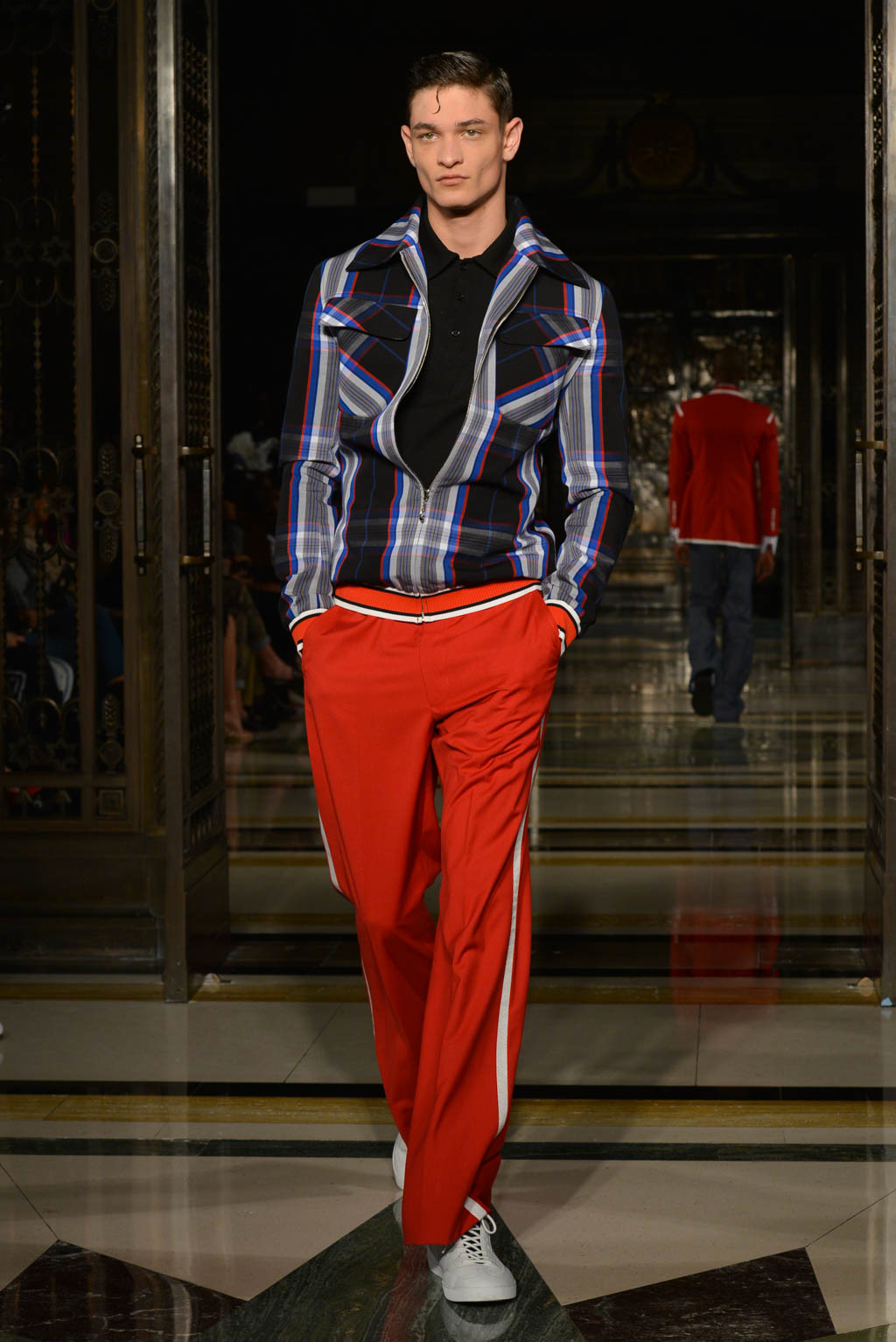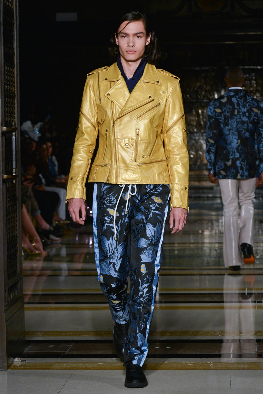 Upon entering Malan Breton’s SS18 catwalk show, entitled “Fantome”, we are met by climactic music which foreshadows what is to come. A powerful colour palette of pearl, yellow, black, blue and red perfectly merges together to create a strong series of looks across both gender categories.