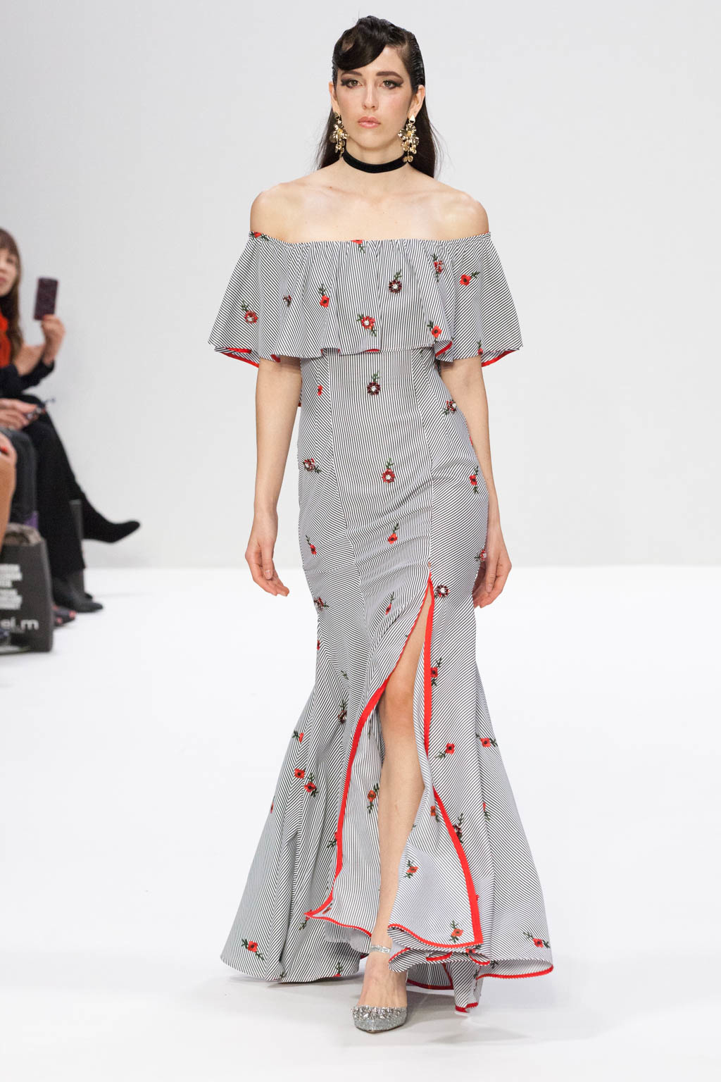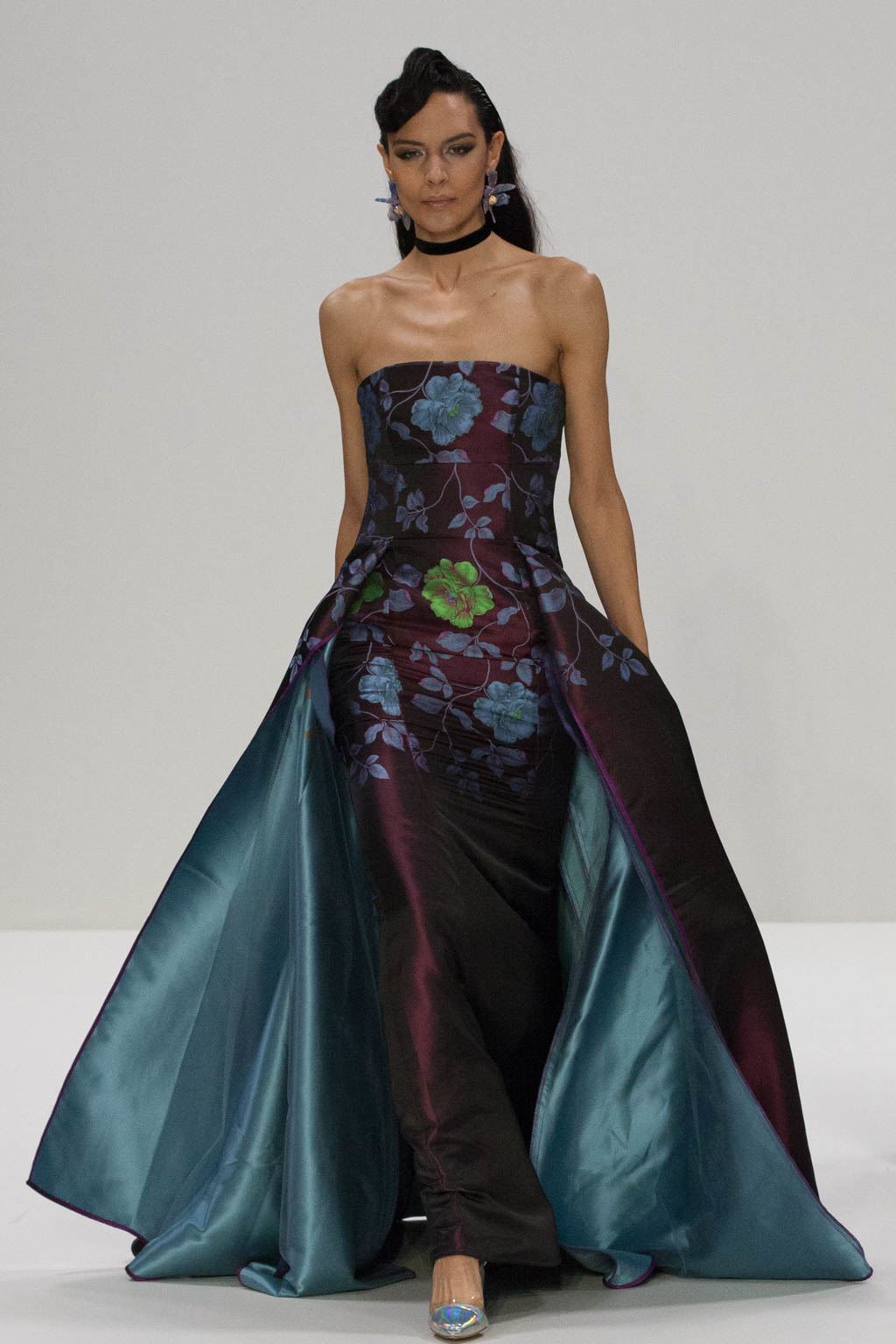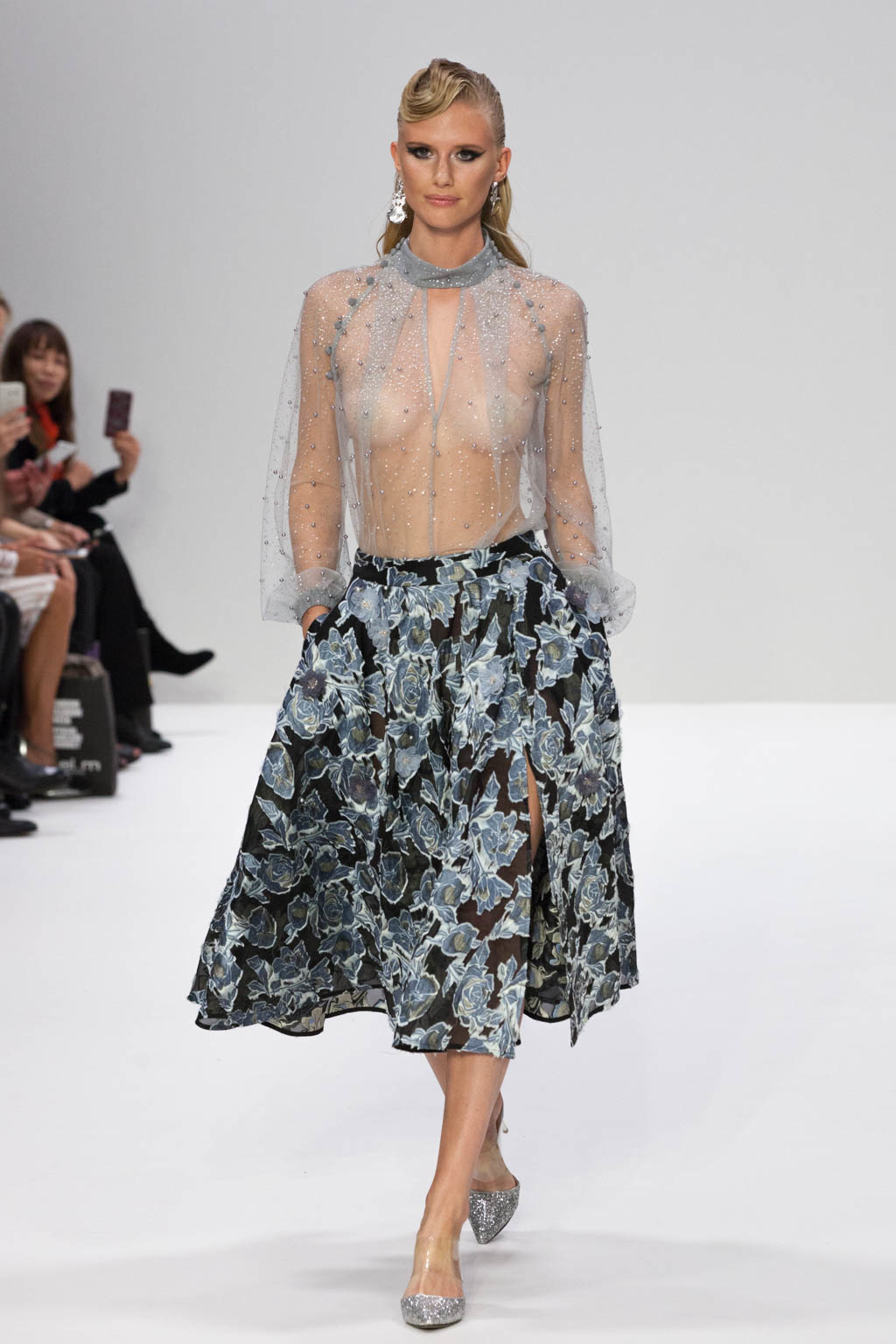 With a grand and rather dramatic announcement that this season would be inspired by Italy, the “quintessence of femininity”, the beaming Italian opera singer appeared at the catwalk entrance and burst into song. And then followed the flurry of glitz, glamour and grandiose that was Swiss fashion house Rohmir’s Spring / Summer 2018 collection.