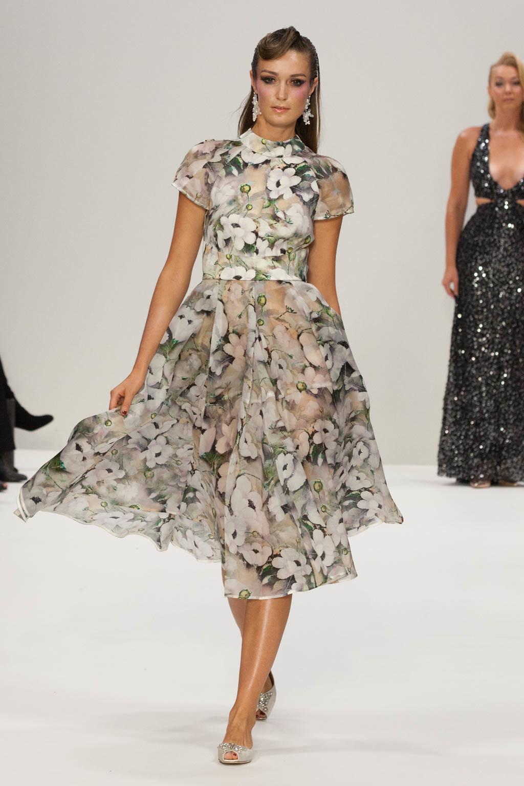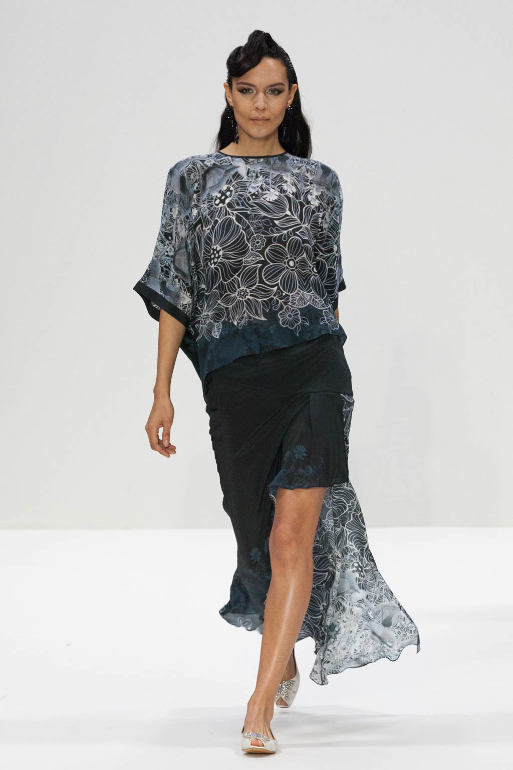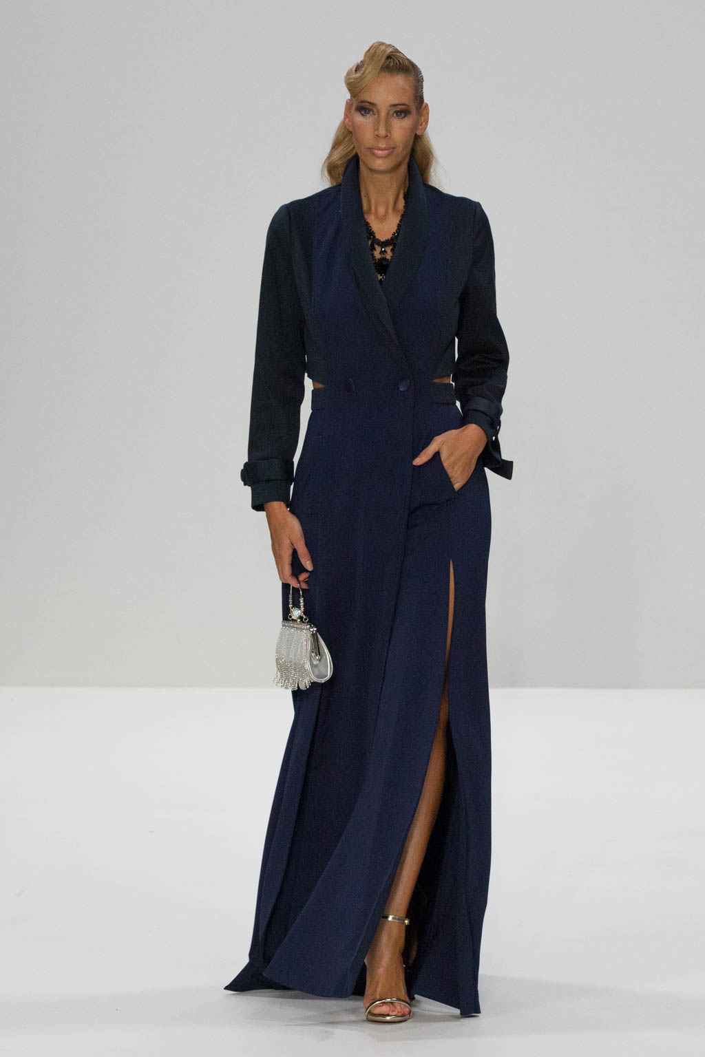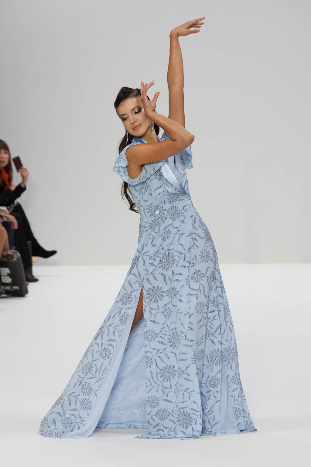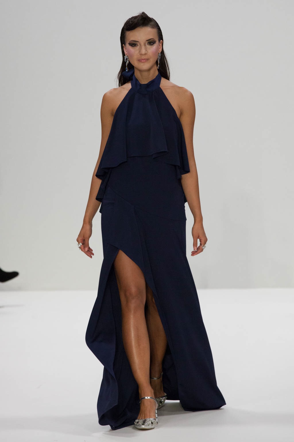 A parade of sweeping gowns in royal and ice blue, murky floral patterns and silver, the Rohmir silhouette was without question absolutely feminine – peplums emphasised the waist, lace clinged to the body and volumes and volumes of fabric created movement in the skirts of dresses.