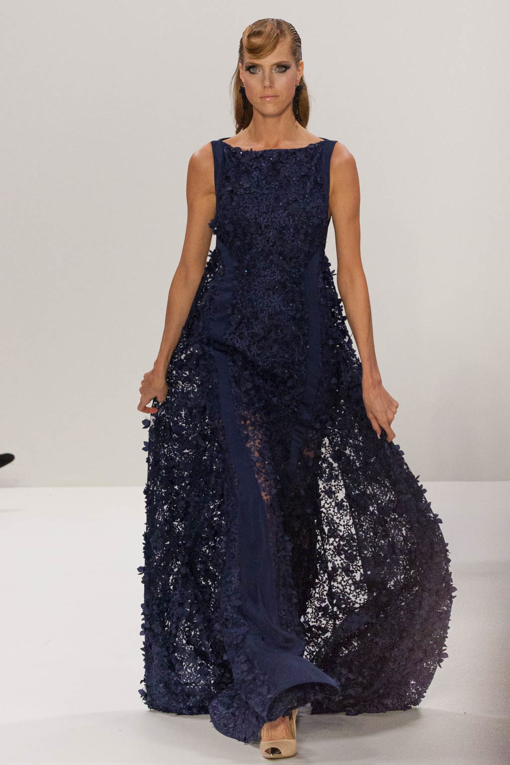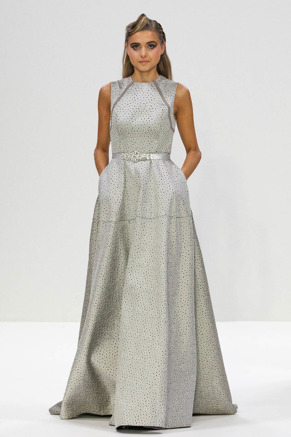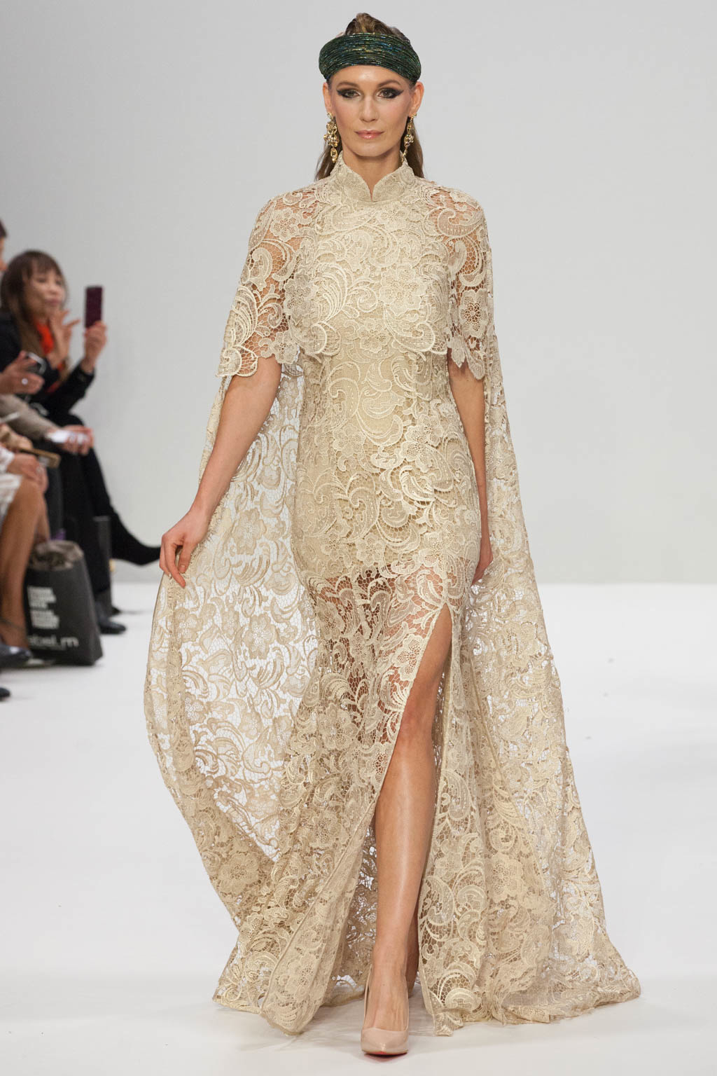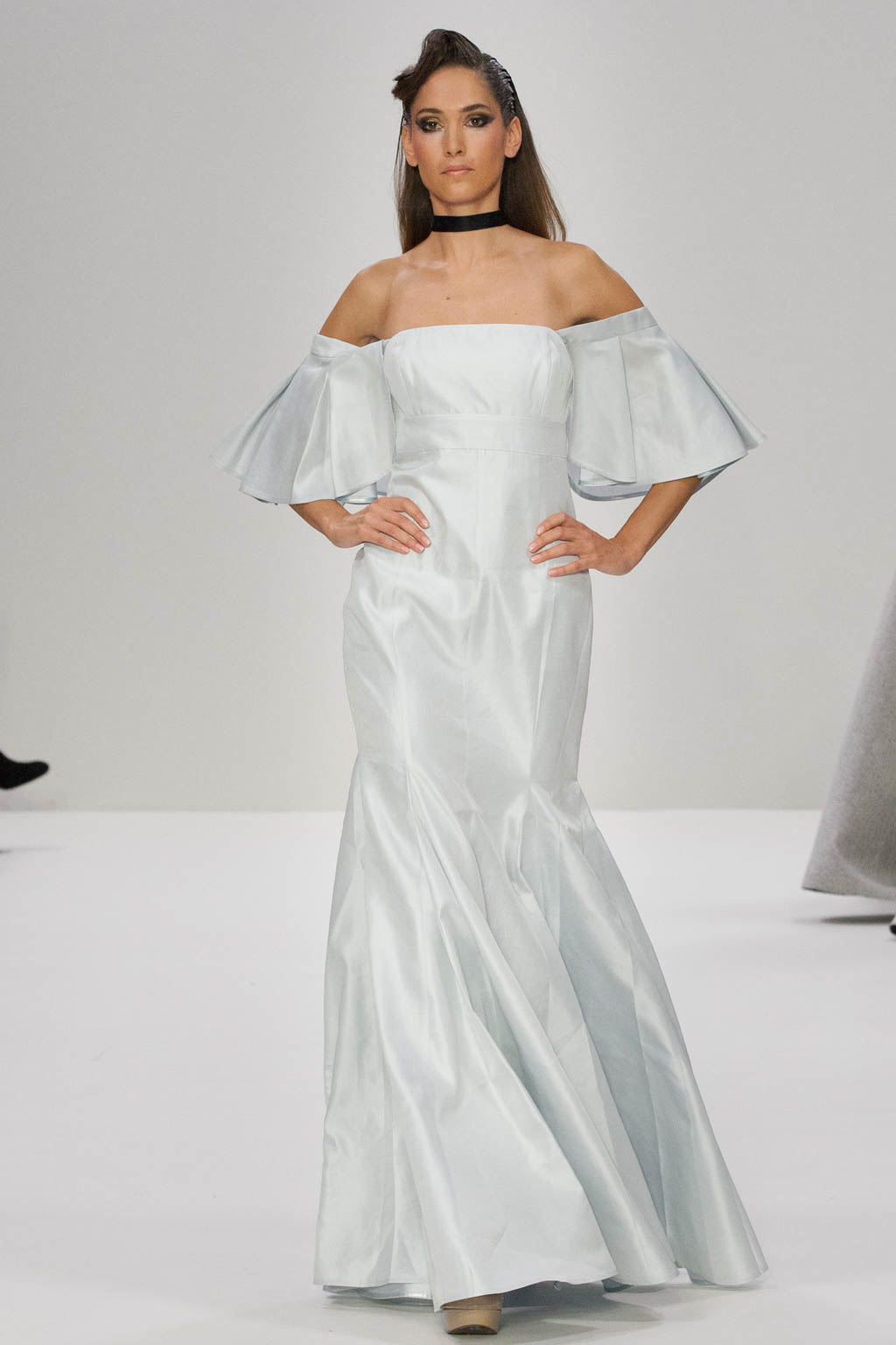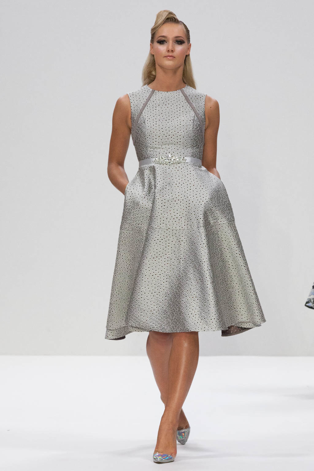 A parade of sweeping gowns in royal and ice blue, murky floral patterns and silver, the Rohmir silhouette was without question absolutely feminine – peplums emphasised the waist, lace clinged to the body and volumes and volumes of fabric created movement in the skirts of dresses.