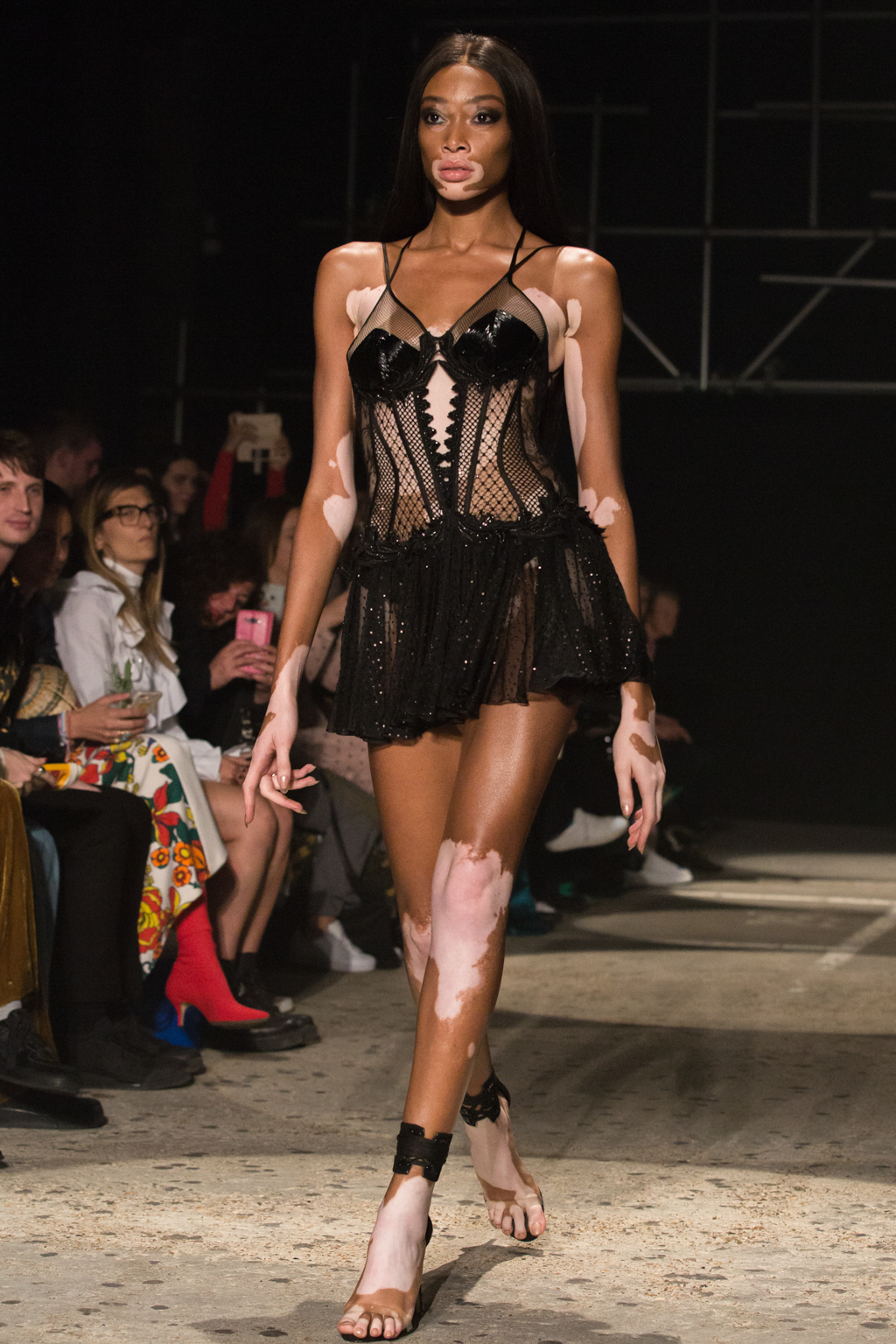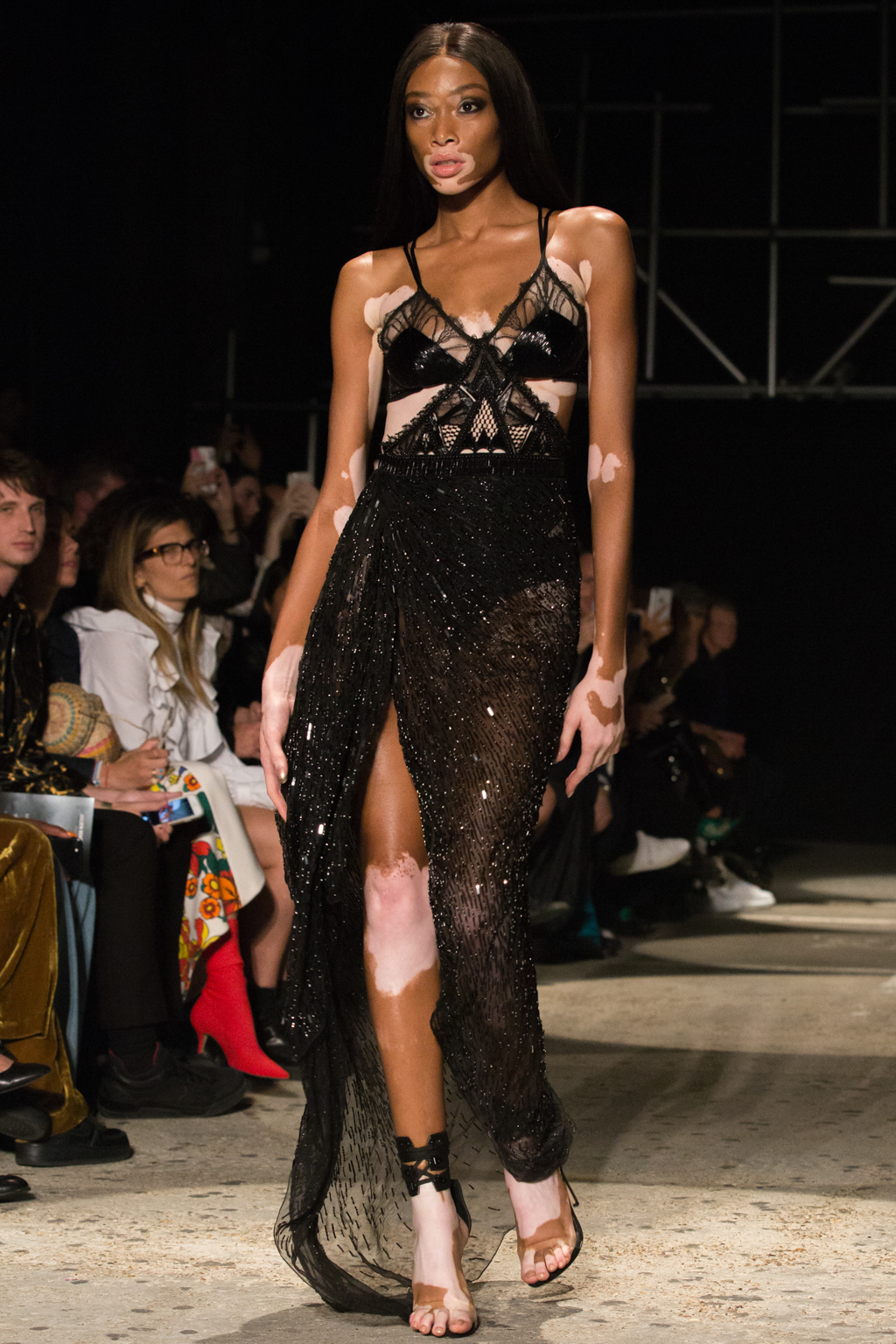 The show closed with an explosion of confetti as the designer appeared hand-in-hand with Winnie Harlow to meet rapturous applause.