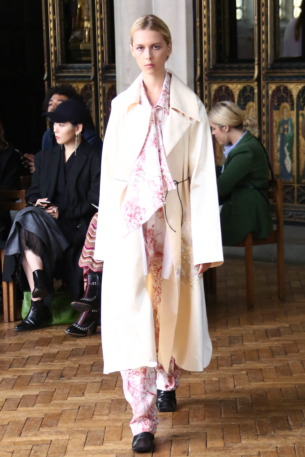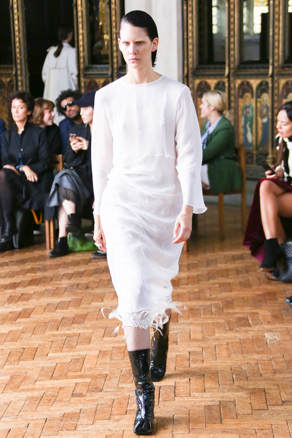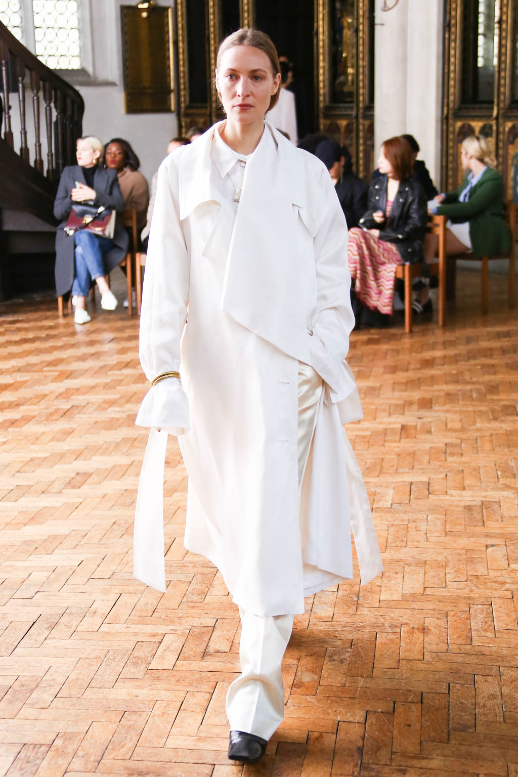 Sharon once again showed at a resplendent church setting like the past two seasons. Breezing through the circular runway were loosely structured overcoats and softly sculpted sling dresses with feathers accents. The relaxed silhouettes were like the miracle sleepy lotion, almost immediately exuding a sense no-fuss comfort that is needed to beat the blistering summer heat.