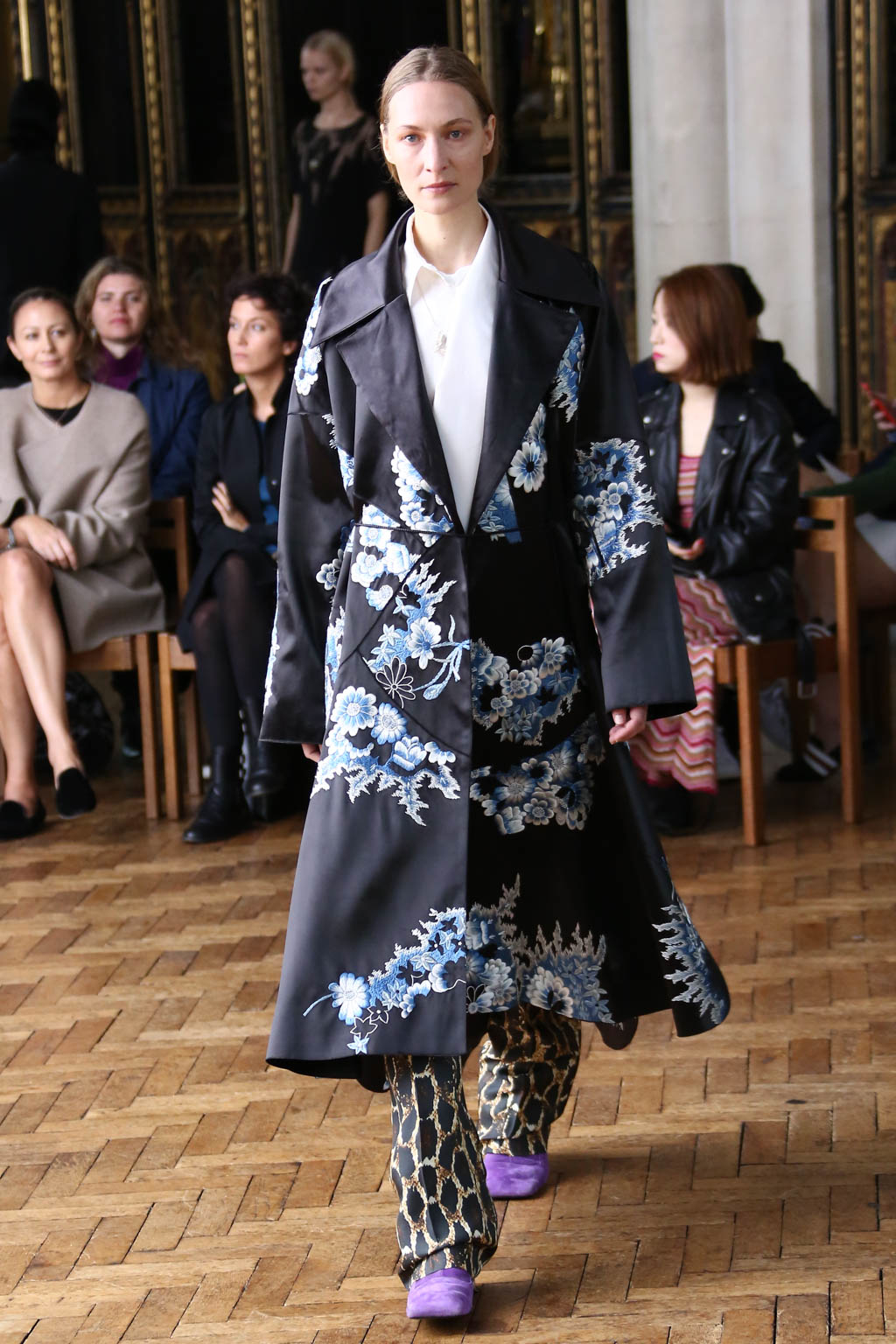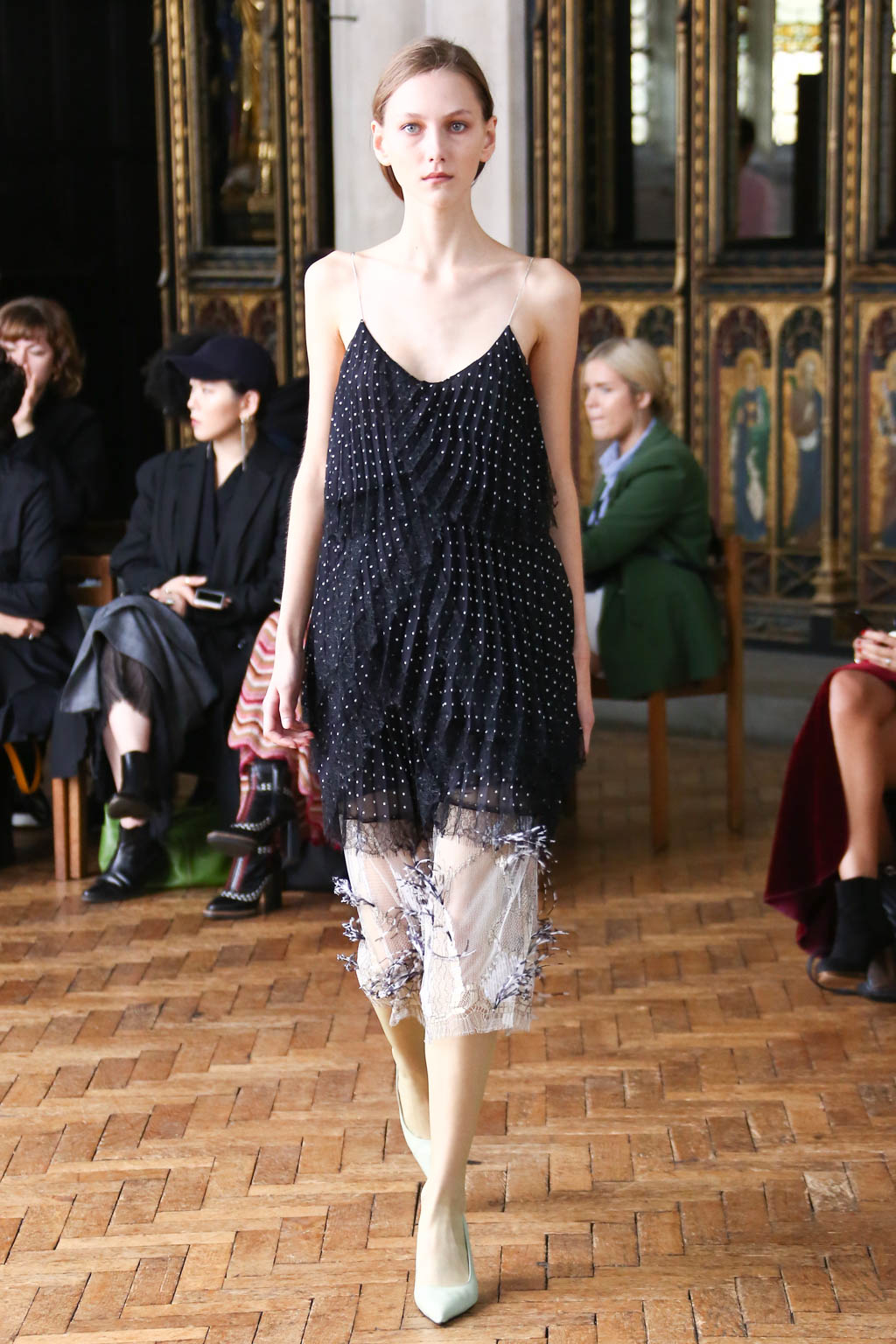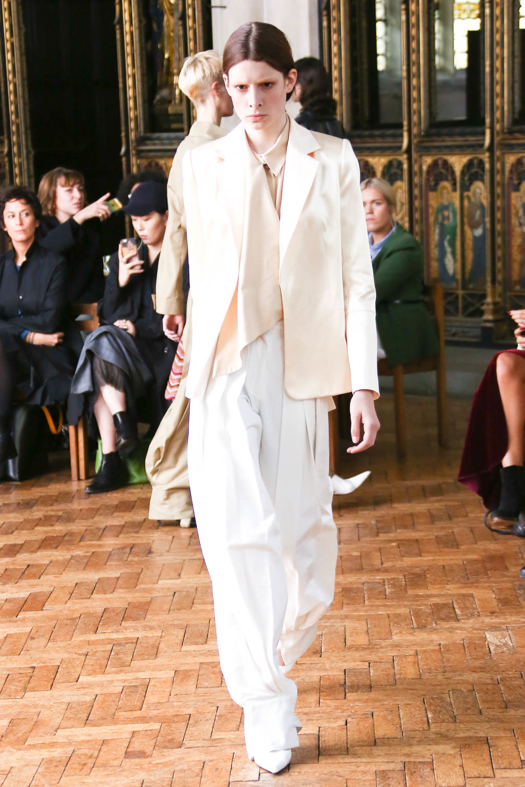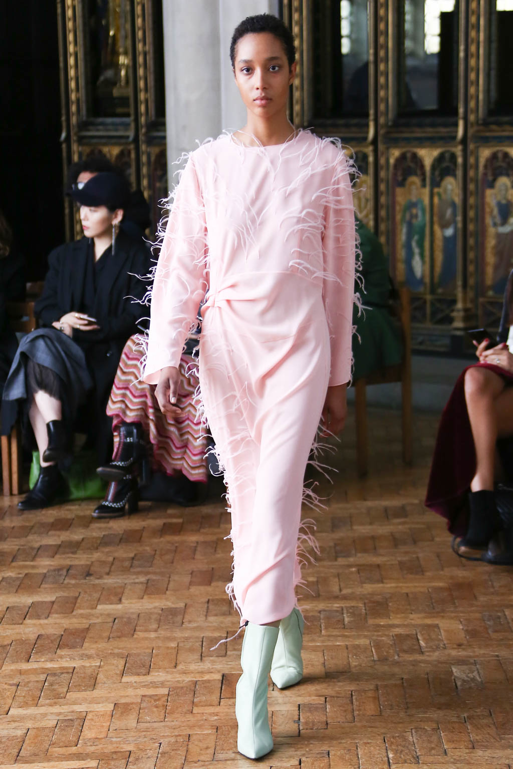 Sharon once again showed at a resplendent church setting like the past two seasons. Breezing through the circular runway were loosely structured overcoats and softly sculpted sling dresses with feathers accents. The relaxed silhouettes were like the miracle sleepy lotion, almost immediately exuding a sense no-fuss comfort that is needed to beat the blistering summer heat.