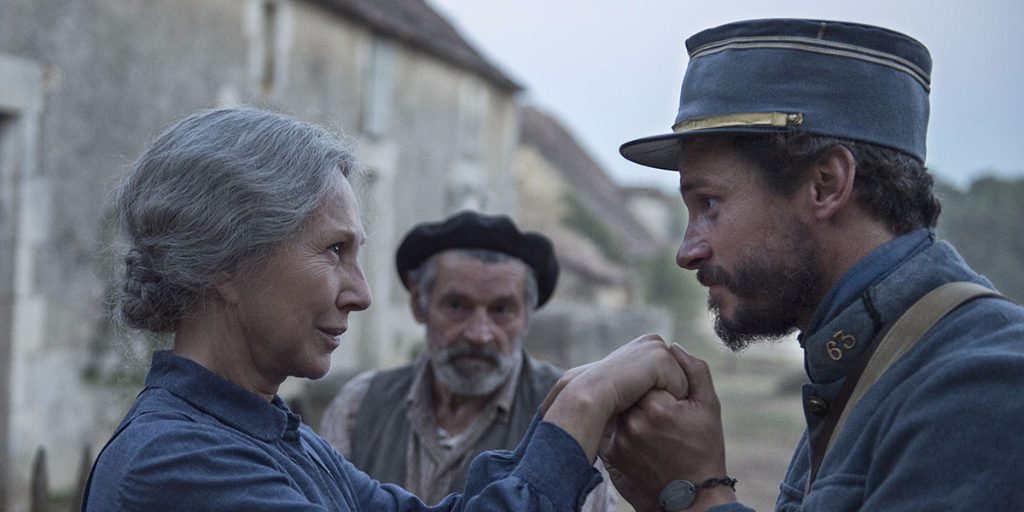 Opening on a still and body-littered battlefield in 1915, The Guardians is set in the French countryside, at the Paridier Farm. Constant (Nicolas Giraud) is a French soldier on leave from the Great War, and is home to visit his parents and family at the farm. His arrival and departure are swift and brief, giving his relatives little understanding of what his experiences are on the front line – perhaps an attempt to save them from worry. With Constant, his brother George (Cyril Descours) and brother-in-law Clovis (Olivier Rabourdin) away on duty, the farm is short of hands, and the Paridier matriarch, Hortense, played by the wonderful, stone-cold Nathalie Baye, must find a new worker for the harvest. Enter Francine (Iris Bry), a sensitive orphan of high intelligence. As Francine adjusts to her new employment, war rages on in the background, creating an ever-evolving environment for all at the farm.