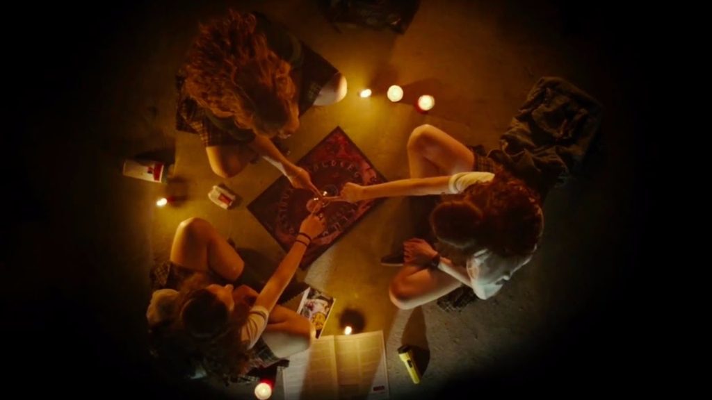 A fatherless 15-year-old girl, Veronica (Sandra Escacena) must take care of her much younger siblings as her mother works most of the time. A sense of her aloneness is established, and that she misses her deceased father. The teenager has the idea of trying to contact his spirit via a seance and she and two other girls secretly slip into a murky, spooky dungeon-like basement of their convent school to use the Ouija board they discover there. Consulting a book also found, The Great Encyclopedia of the Occult, and some magazines on black magic, they endeavour to be as accurate as possible in terms of using symbols and phrases to conjure the dead. Almost immediately something terrifyingly aggressive takes over the Ouija board and Veronica falls into a trance-like seizure.