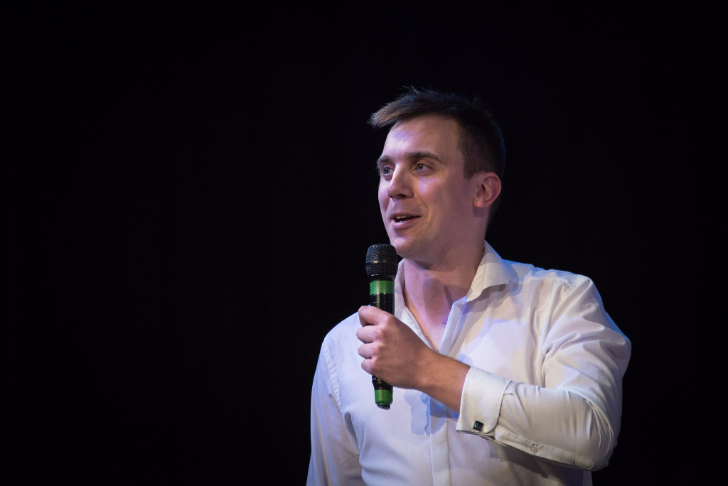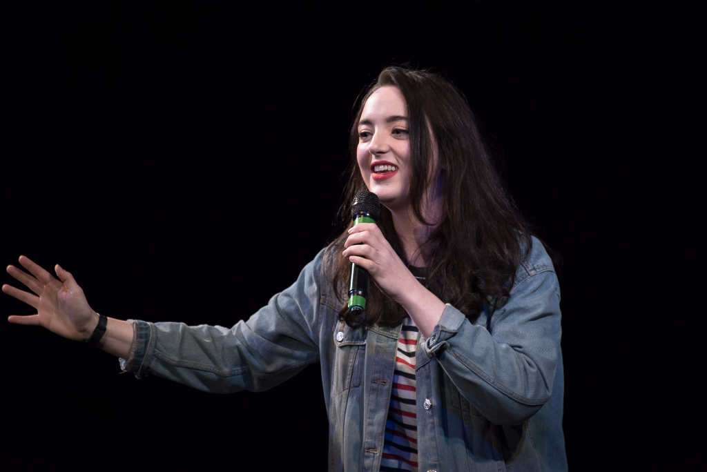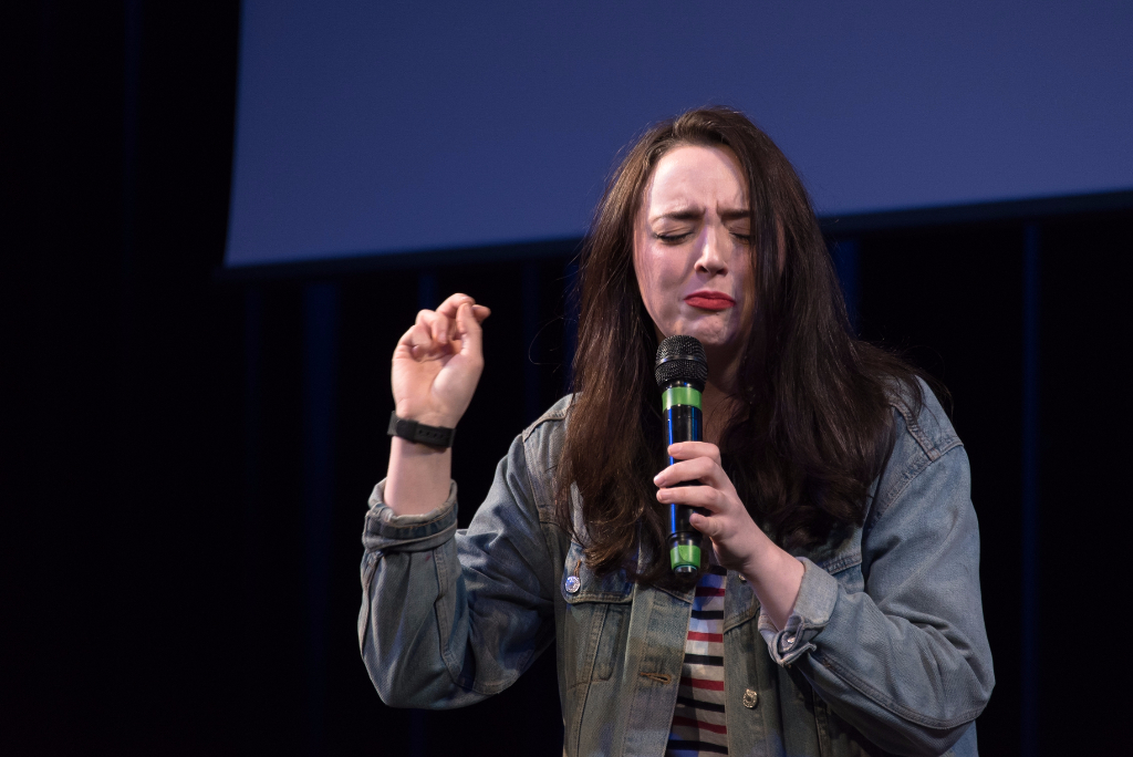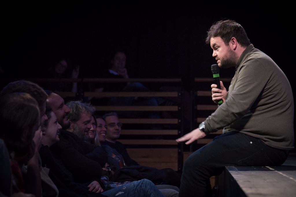 Next up is 2017 Edinburgh Comedy Award nominee Mat Ewins: a comedian for the YouTube generation. “I’ve not written a joke since 2012,” he muses as he presents clip after clip on a projector screen. Audience participation plays a vital role: he invites us to choose en masse which items we’d pick up if stranded on a desert island and he hands a member of the front row a game pad so he can play via the onstage screen. Thanks to a fast-paced energy, simple delivery and innovative media, Ewin’s set is a thoroughly enjoyable treat. His sea shanty singalong is a hysterical highlight.